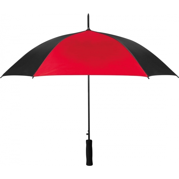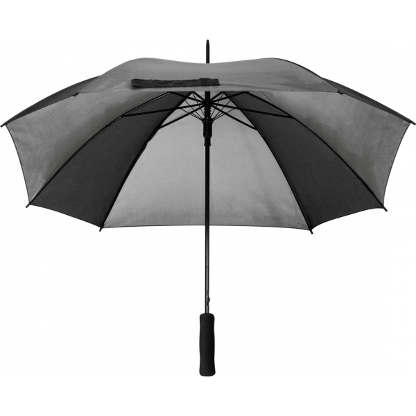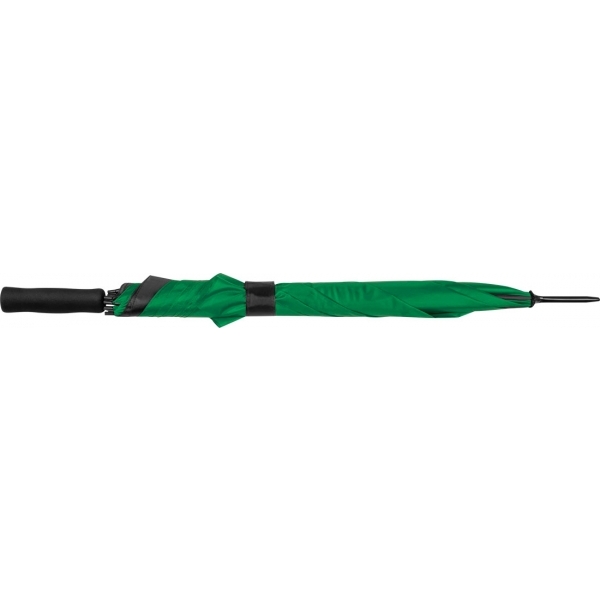 Автоматический зонт из полиэстера с алюминиевой рамкой и мягкой ручкой.