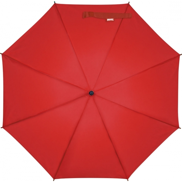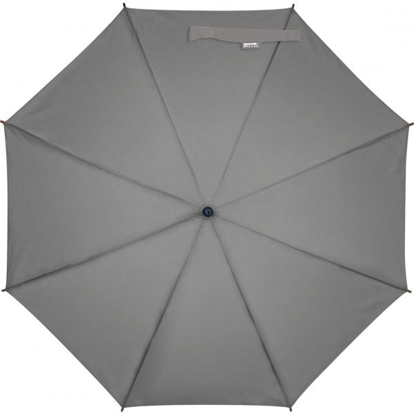 Автоматический ветрозащитный зонт из стекловолокна с изогнутой деревянной ручкой.