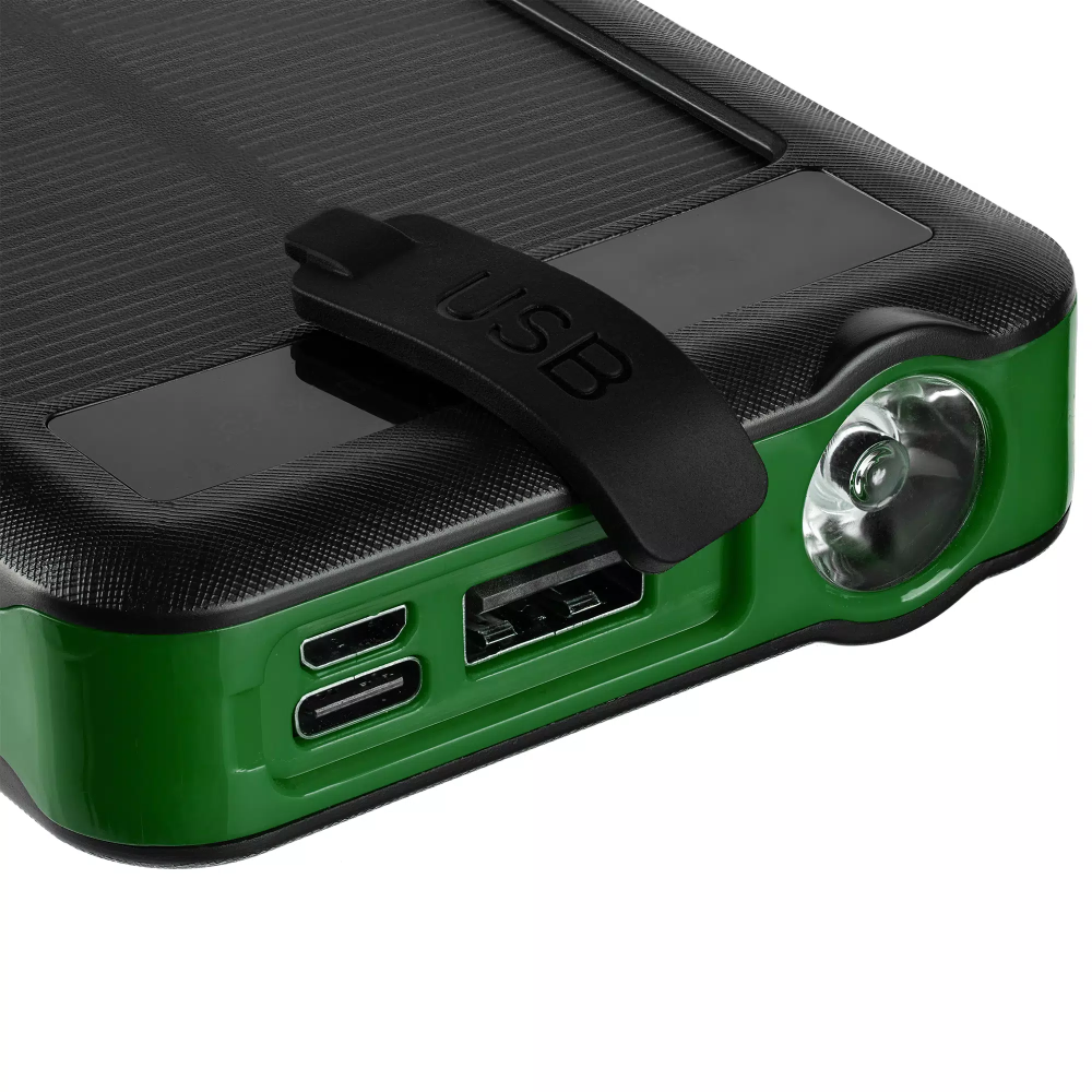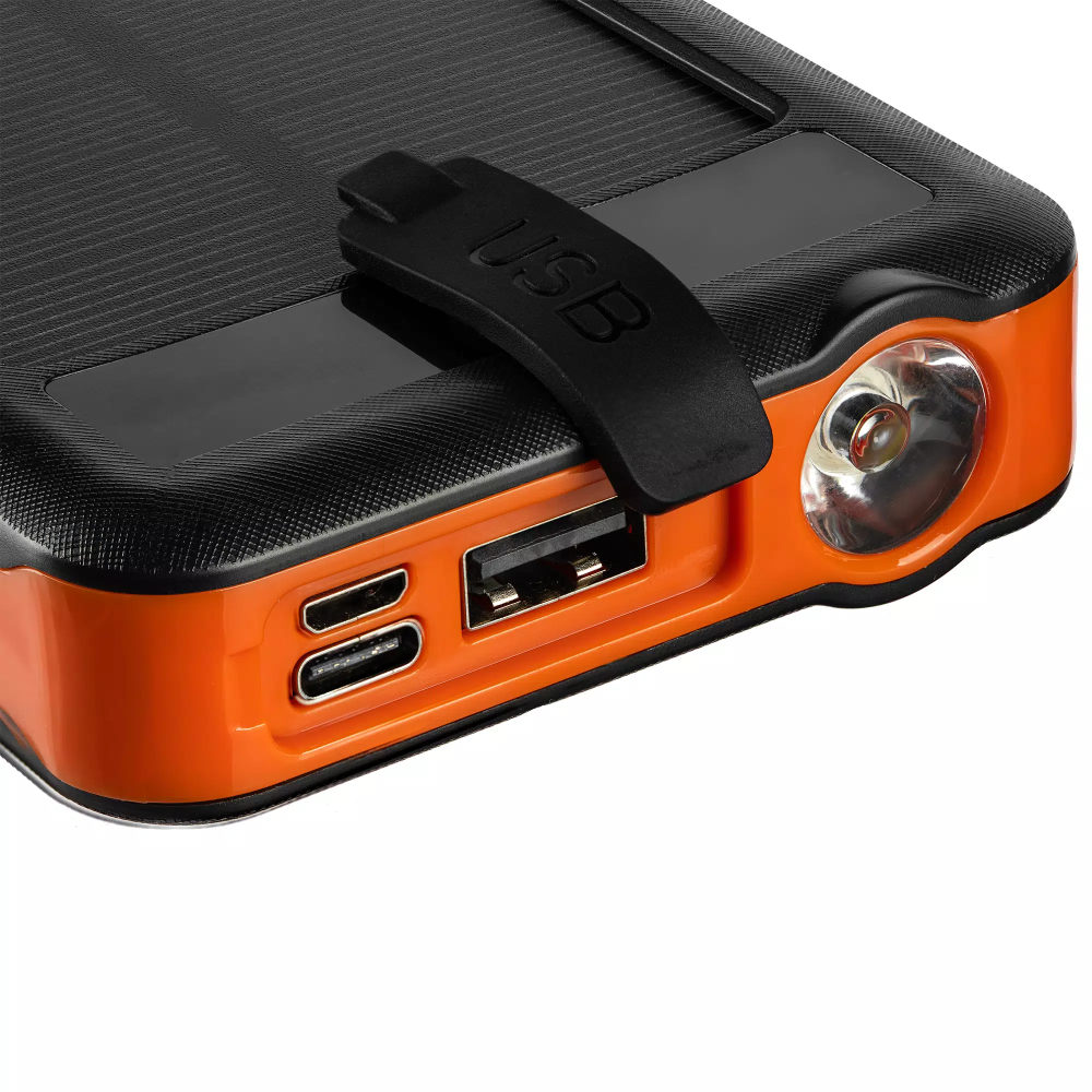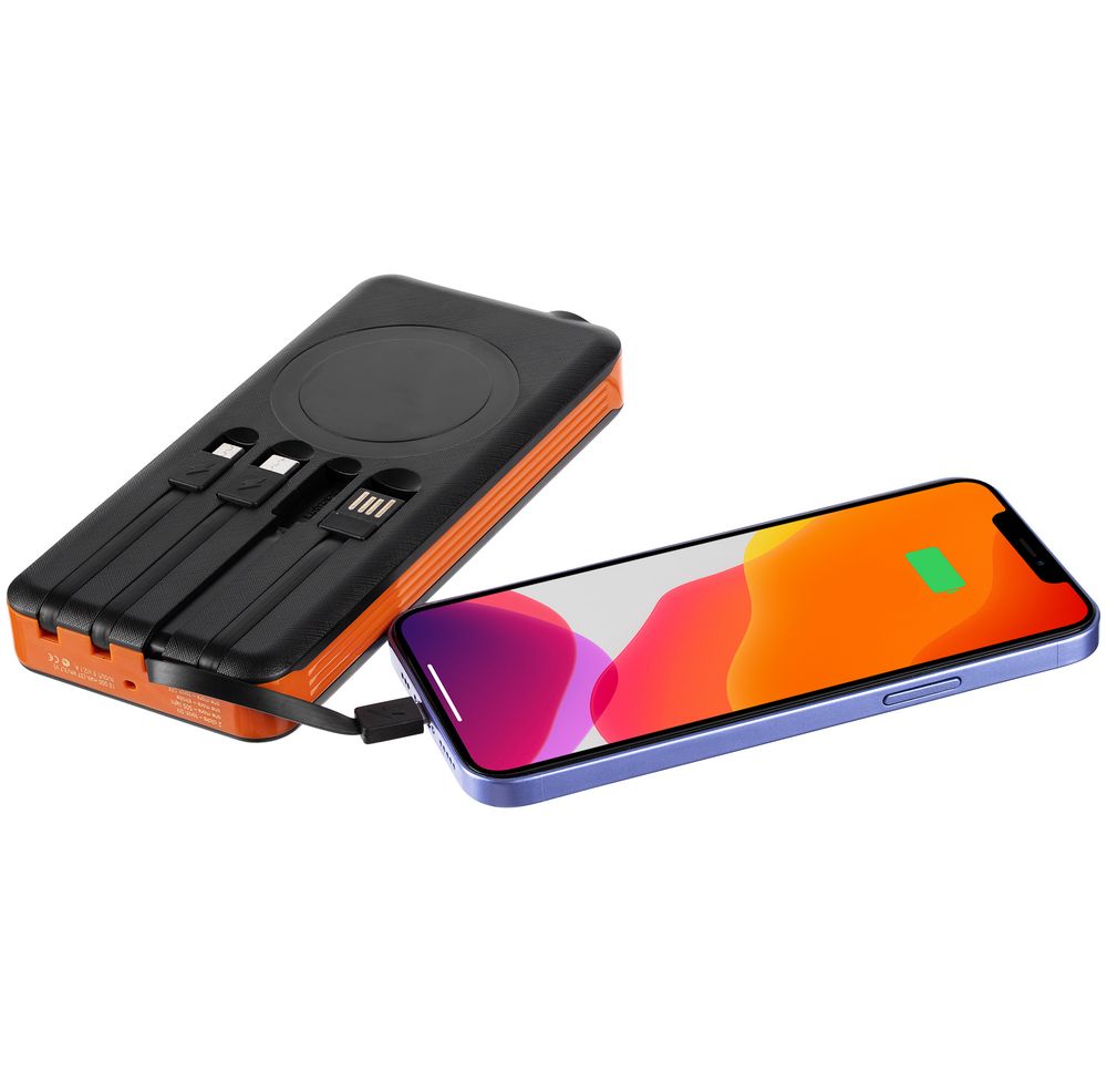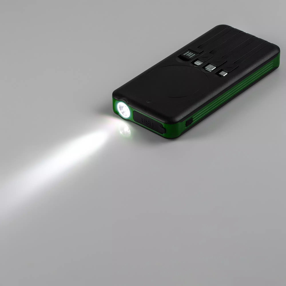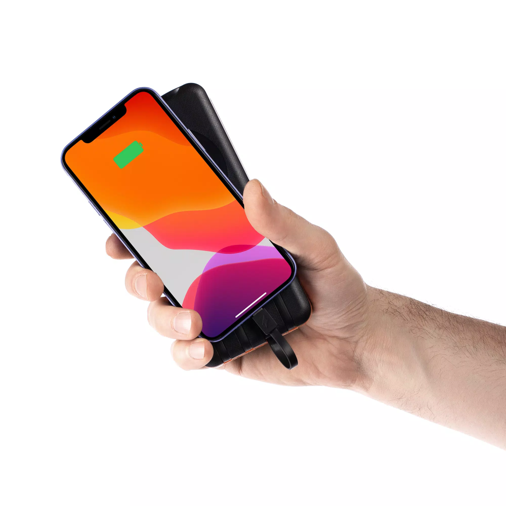 Holiday Maker — outdoor-аккумулятор с ударопрочным корпусом и защитой от пыли и брызг. Позволяет заряжать разные типы устройств. Идет с 3 встроенным кабелям с разъемами micro USB, Type-C и Lightning.