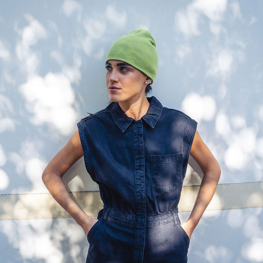 Небольшая вязаная шапка из 100% сертифицированной органической хлопковой пряжи. Натуральная и гипоаллергенная. Без отворота с плотной посадкой. Двухслойная круговая вязка /без заднего шва/.