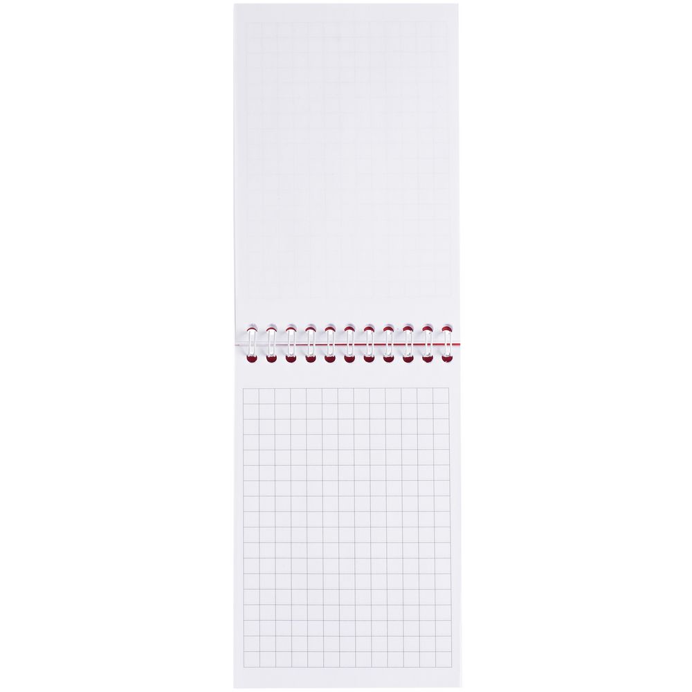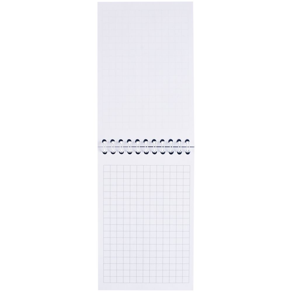 Блокнот формата А6 на пружине с цветной обложкой.Обложка выполнена из картона Dali плотностью 285 г/м².Блок из белой бумаги плотностью 70 г/м², 50 листов в клетку.