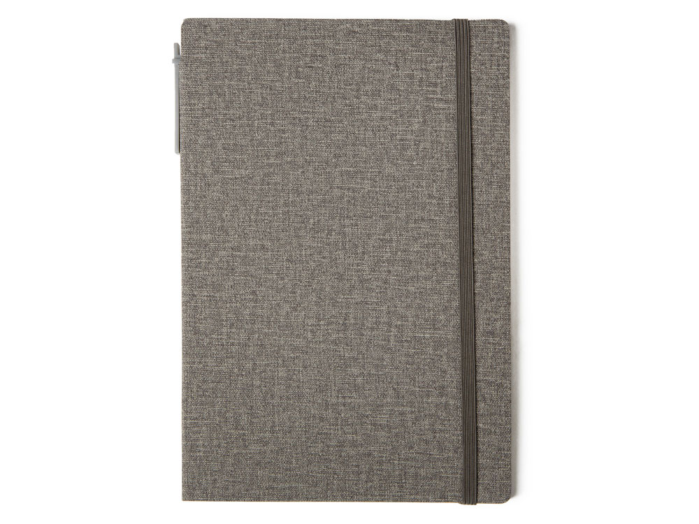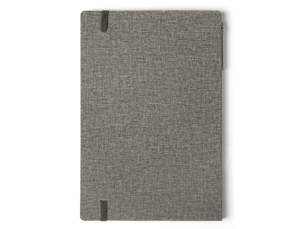 Набор включает в себя разноцветные стикеры разных размеров, блокнот с линованной бумагой и ручку c корпусом из переработанного картона. Обложка выполнена из фактурной искусственной кожи, которая, при тиснении, меняет цвет на более глубокий.