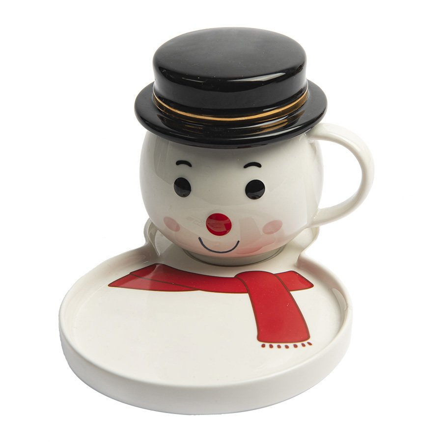 По-настоящему новогодняя чайная пара Снеговик! Кружка обтекаемой формы с крышкой в виде шляпы.Крышку можно использовать для конфет или чайных пакетиков, плюс она точно не даст остыть вашему напитку. Вместительное блюдце, на которое можно положить круассан или любимое пирожное. Такой подарок совершенно точно завоюет внимание и любовь того, кому его подарят! Индивидуальная упаковка из крафтового картона.