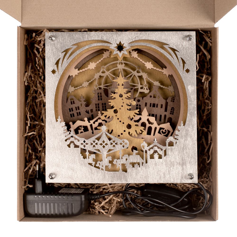 Зимние праздники сотканы из волшебства и чудес — как важно поймать это настроение, но еще приятнее поделиться им с другими!Ночник Merry Christmas с объемными резными изображениями создаст по-настоящему праздничное настроение и погрузит в сказочную атмосферу. В его многослойных очертаниях угадывается такой знакомый и родной сюжет рождественской ярмарки — участником может стать любой фантазер! Поставляется в индивидуальной картонной коробке.
