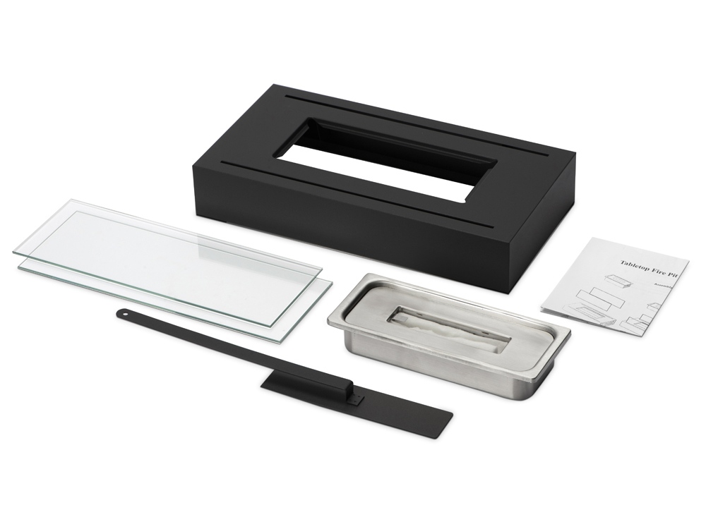 Комплектность: металлическая база, стеклянные стенки- 2шт, емкость для топлива, заглушка для тушения пламени, керамическая вата, инструкция по применению.