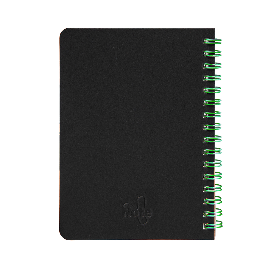 Блокнот на двойной цветной пружине HELIX MINI бренда Y-Note - это универсальное рекламное решение для вашего бизнеса. Обложки блокнотов HELIX MINI изготовлены из черного высококачественного картона, плотностью 400 г/м2. + 400 г/м2. На оборотной стороне обложки тиснение бренда. Двойная пружина черного цвета. Блок из 50 листов в клетку плотностью 70 г/м2. Индивидуальная упаковка: пластиковый пакет.