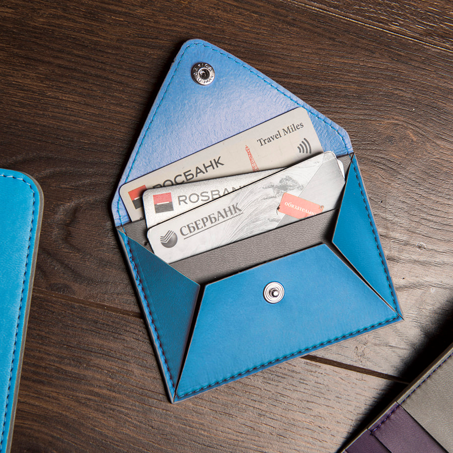 Холдер для карт на кнопке -двойное PU -термоактивный материал, форма идеально подхоит для УФ-печати -запаянные края -строчка в цвет изделия -контрастные детали