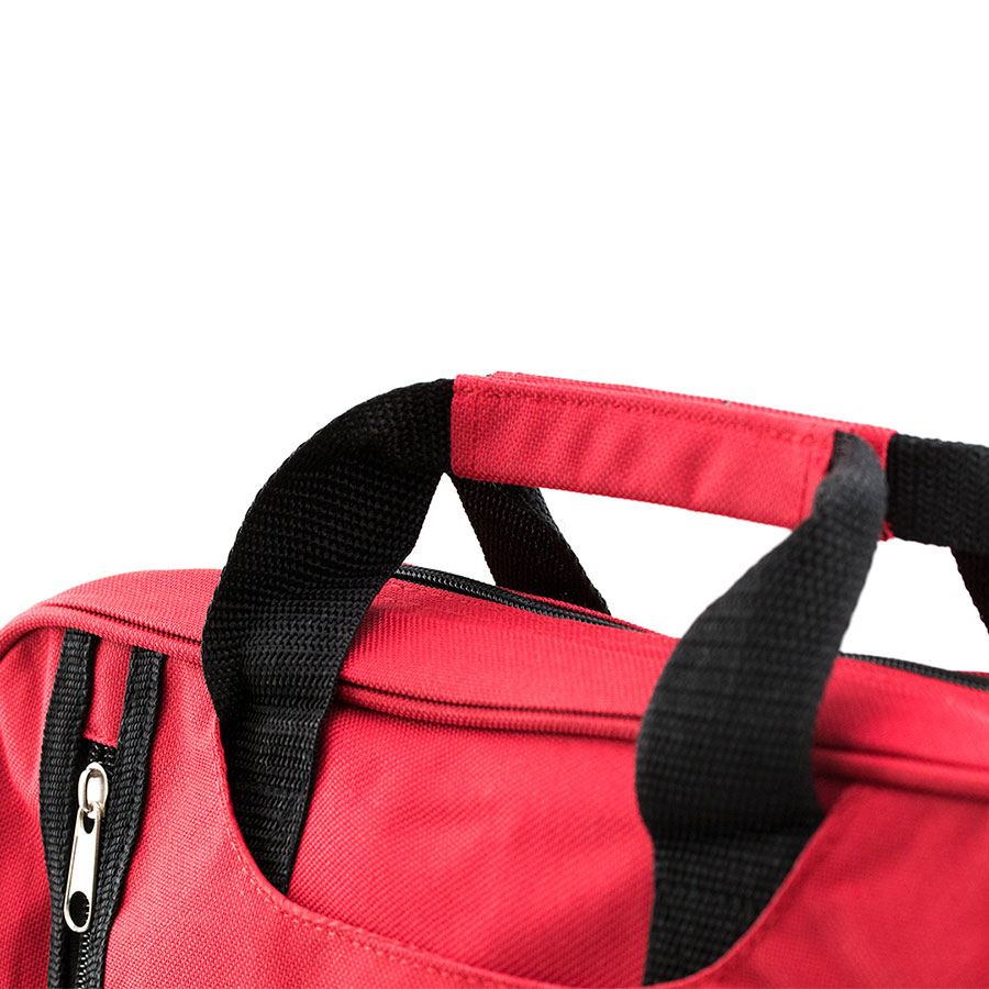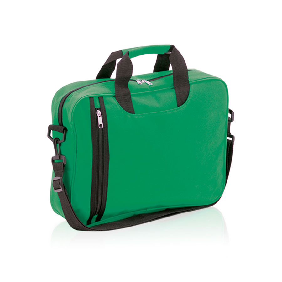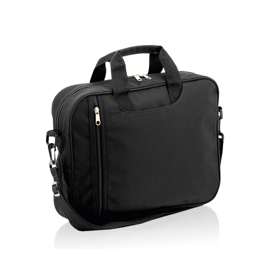Сумка для документов из мягкого полиэстера 600D с застежкой-молнией и оригинальным передним карманом по вертикали. Отделение под ручками, усиленные ручки для переноски подходящего цвета и регулируемый плечевой ремень с карабинами.