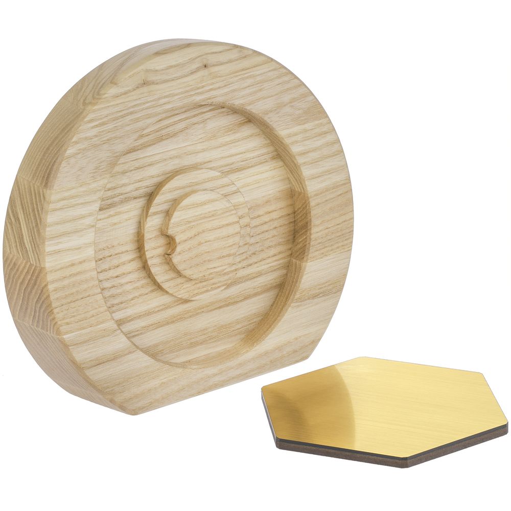 Красивое решение подойдет как для команды, так и для отдельных выдающихся личностей. Вставка со звездой из зеркального пластика на деревянной основе крепится на приподнятое основание внутри стелы, что создает объем и многослойность награды. На вставке предусмотрен клеевой слой для крепления после нанесения.Дизайн: Алексей ЧугунниковИсключительное право: ООО «Проект 111»