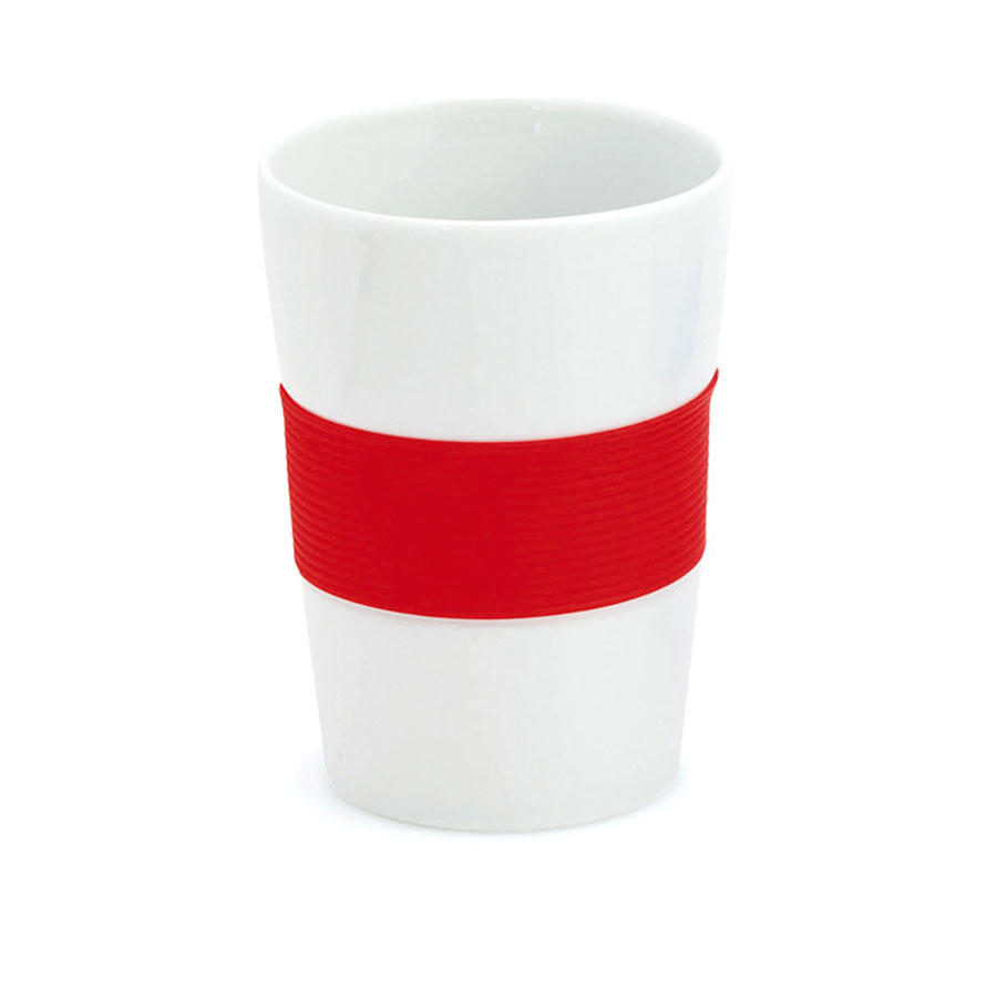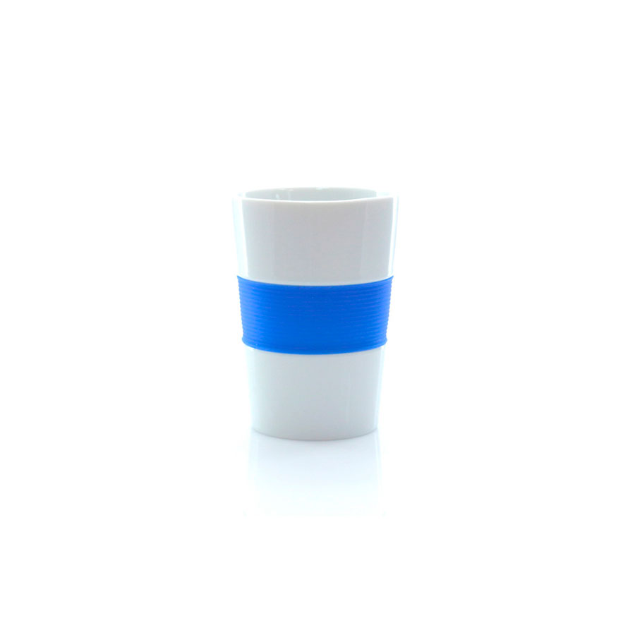 Керамический стакан с яркой силиконовой манжетой-держателем. Манжета предохраняет руки в случае нагрева стакана с горячей жидкостью. Индивидуальная упаковка.