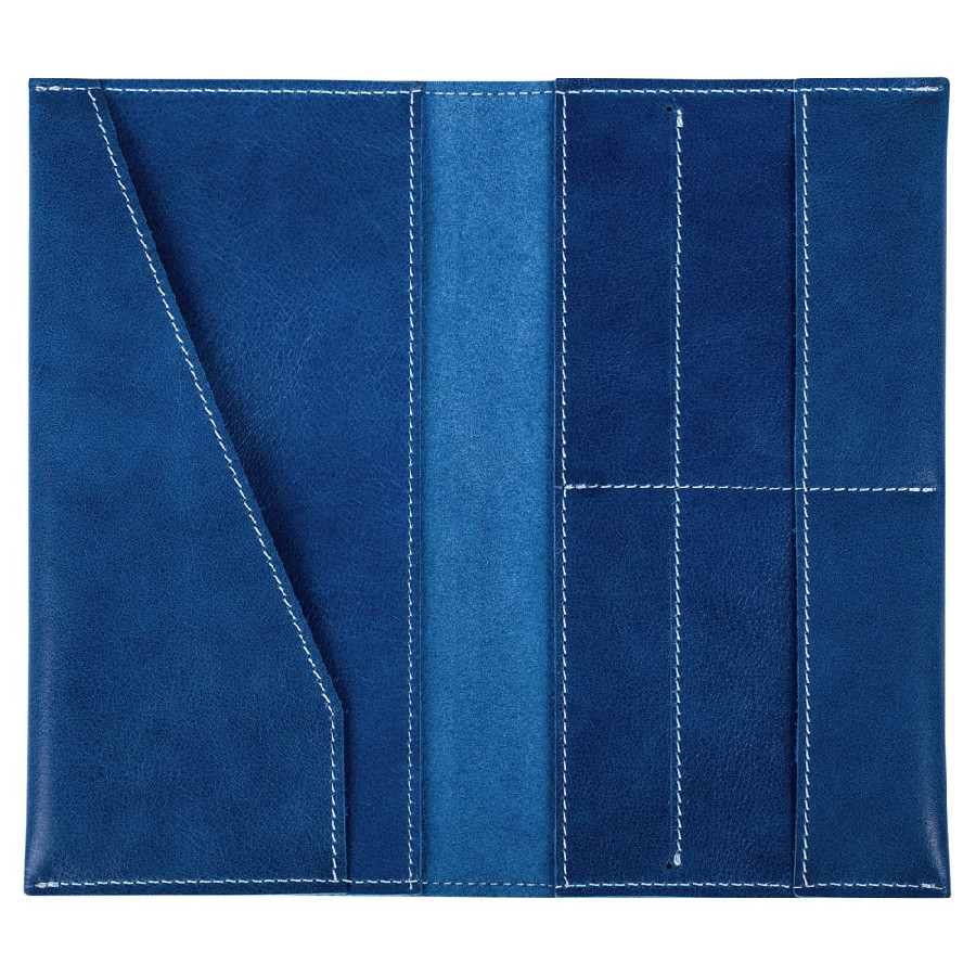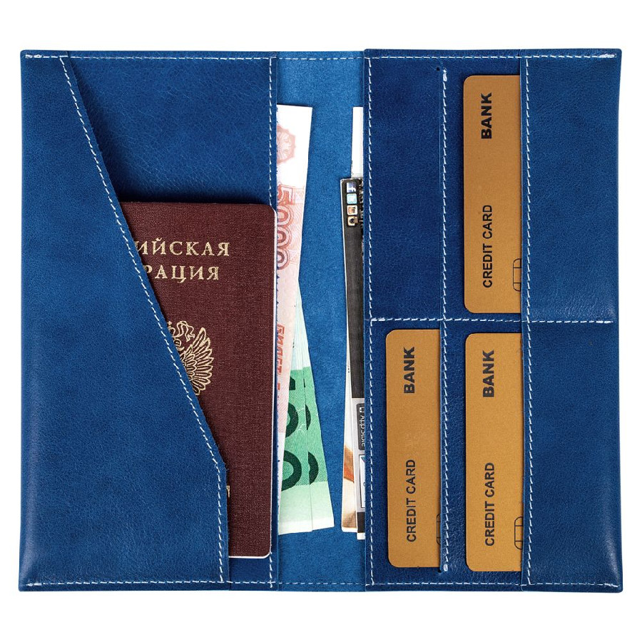 Два больших отделения для купюр и документов. Четыре кармана для пластиковых карт. Дополнительный карман для билетов на самолет или поезд.