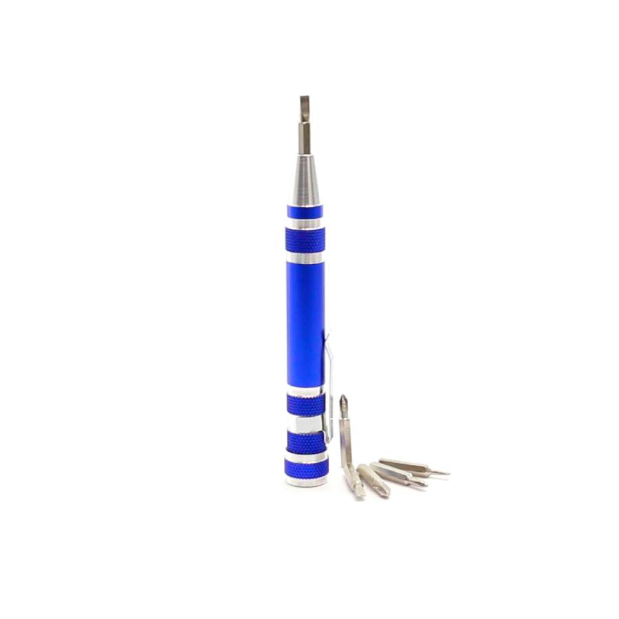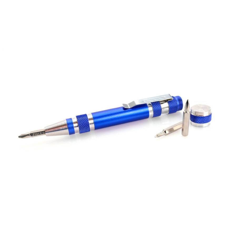 Мультитул с 6 аксессуарами. С нескользящим корпусом и металлическим зажимом. Включает в себя 6 плоских и крестообразных отверток.