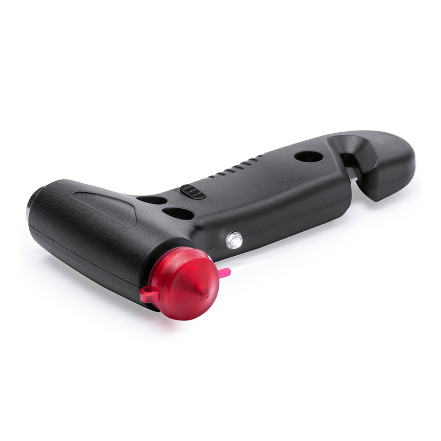 Автомобильный молоток с ножом для ремня безопасности и светодиодной подсветкой. 1 фонарик, 3 режима освещения. Батарейки входят в комплект.