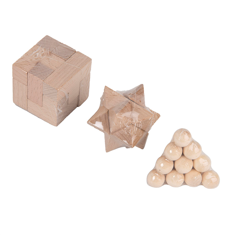 Три головоломки из натурального дерева, в коробке-пенале. Развивает мелкую моторику.