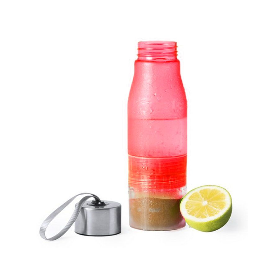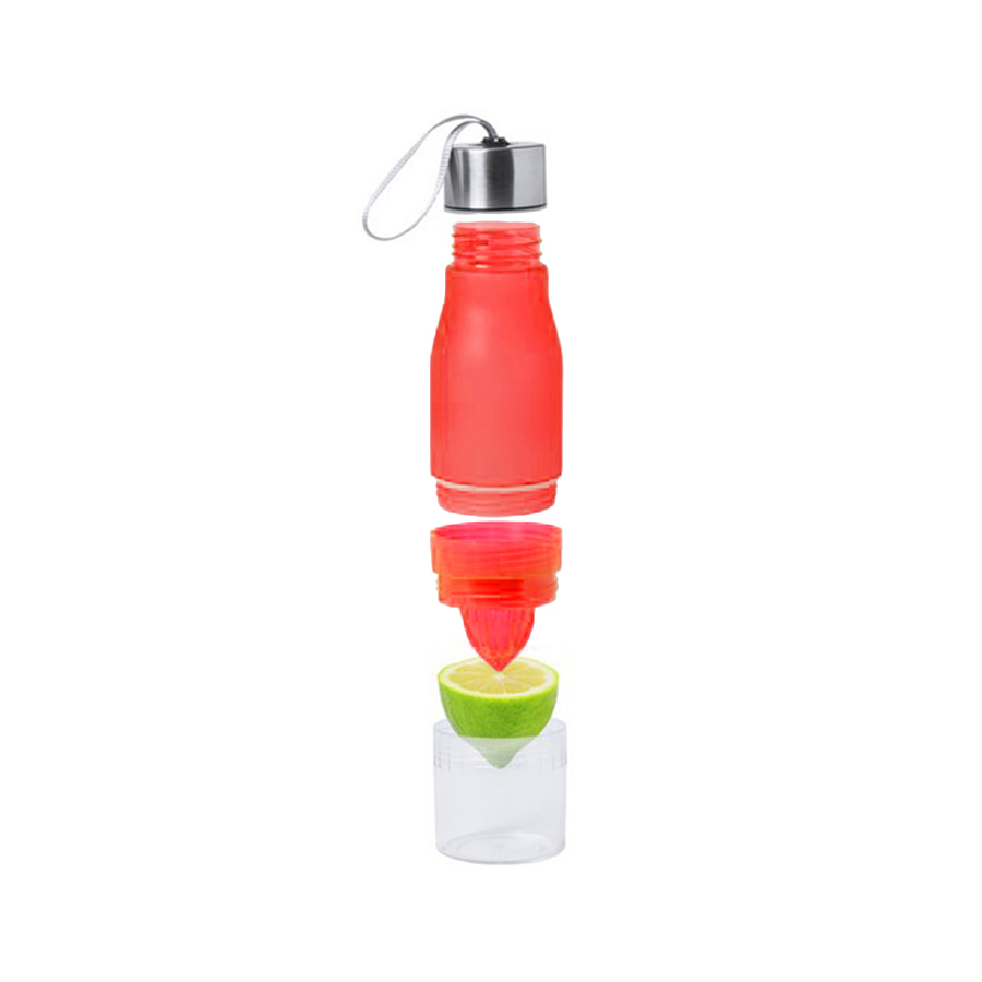 Бутылка выполнена из высококачественного пластика- тритана, без содержания ВРА. Включает отделение с соковыжималкой для цитрусов, чтобы придать аромат воде. С диспенсером, навинчивающейся металлической крышкой и удобной текстильной петлей для переноски. Поставляется в отдельной коробке. Преимущества тритана: -небьющийся - термостойкий - не имеет вкуса/запаха - возможно мытье в посудомоечнорй машине