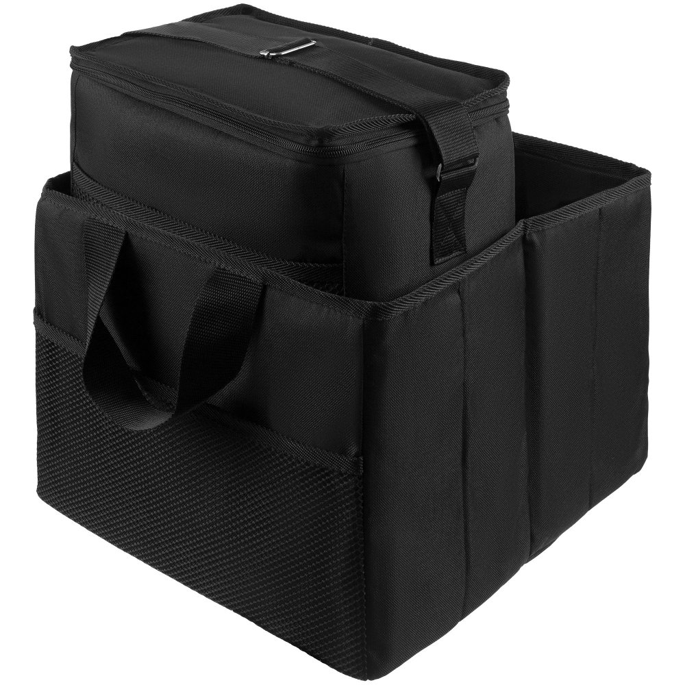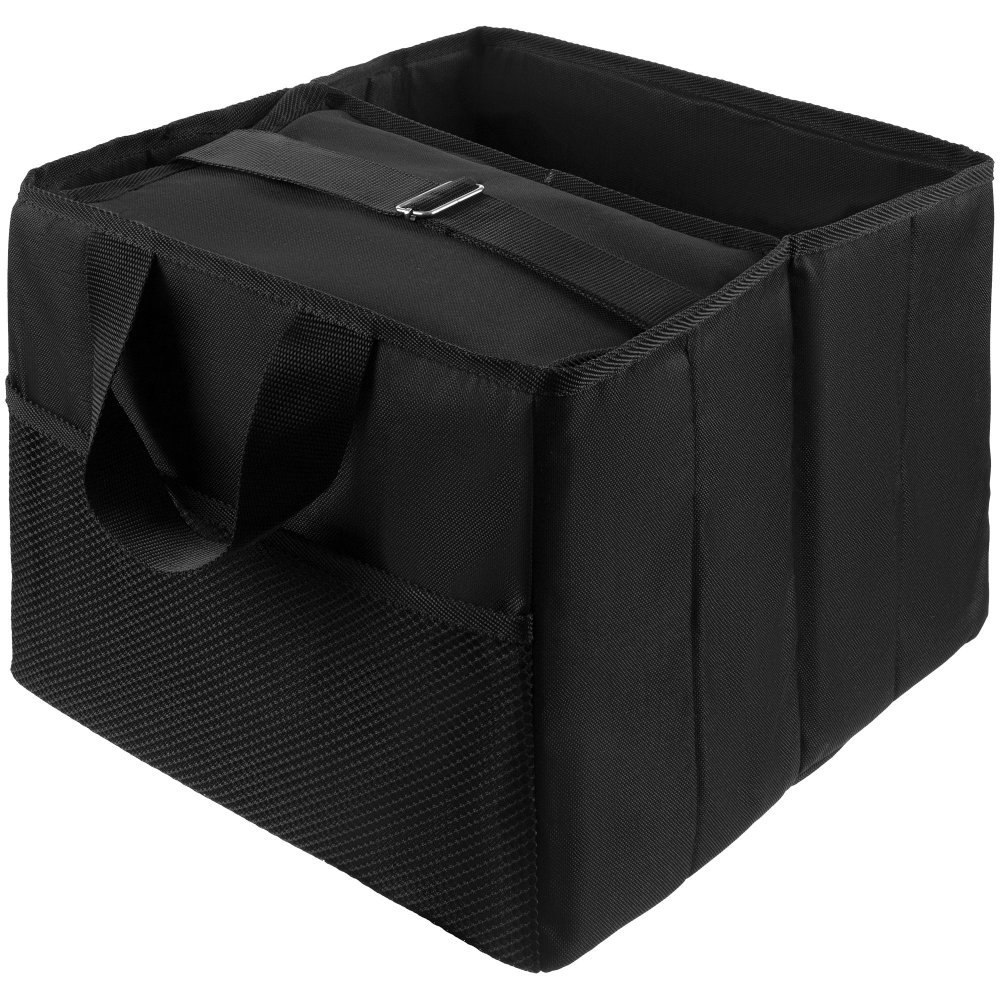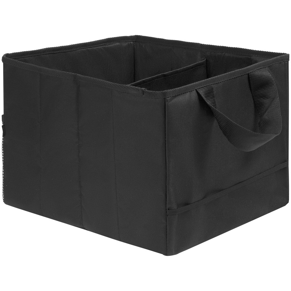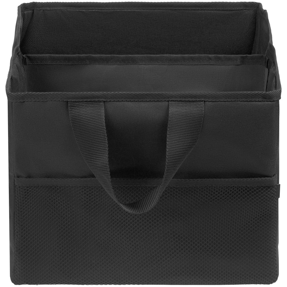 Объемный органайзер с двумя отсеками, внутренним сетчатым карманом и петельками для крепления мелочей. В нем легко разместить необходимые автомобилисту инструменты и аксессуары.