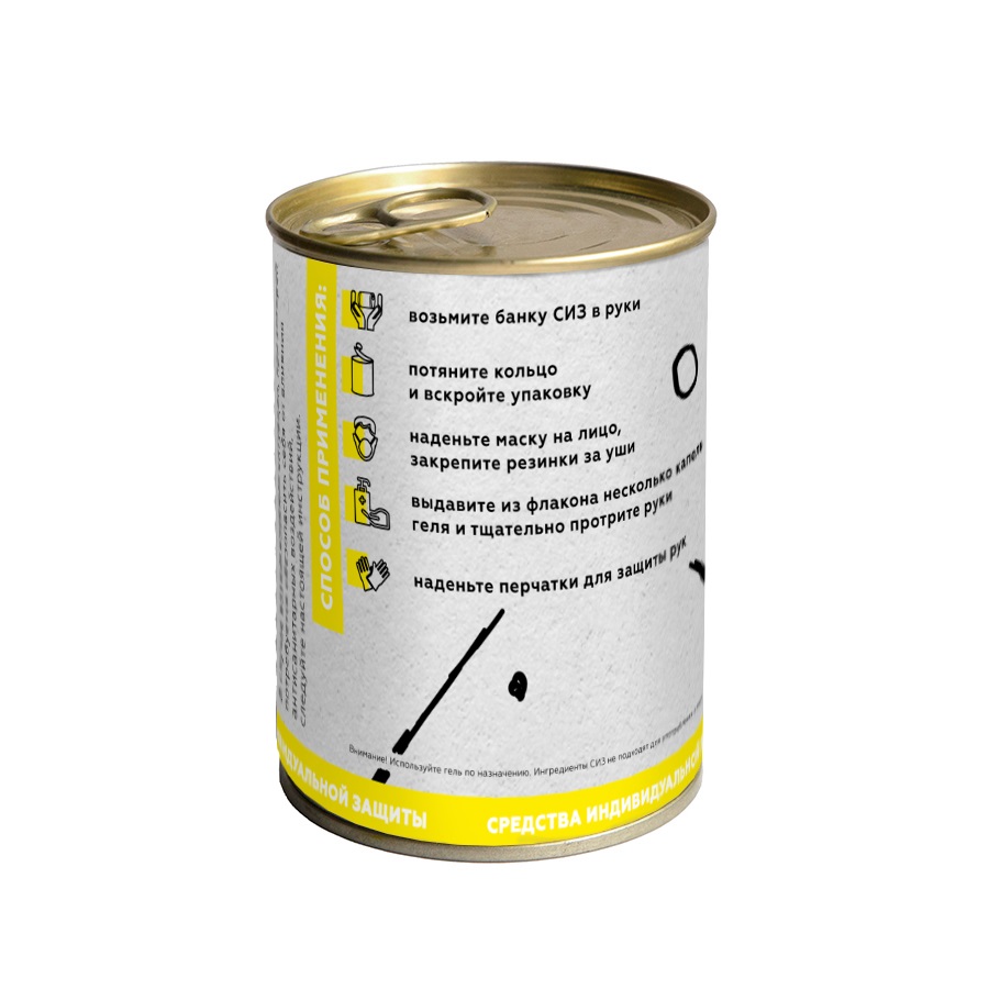 Универсальный комплект защиты на случай угроз здоровью и жизнедеятельности человека. Уникальный продукт! Жестяная запечатанная банка, в которой находятся самые нужные для защиты изделия. Все герметично запечатано и может храниться годами! А значит актуальность подарка будет сохраняться всегда. Набор № 2 состоит из следующих компонетнтов: 1) Защитная х/б маска многоразового пользования. Сшита качественно и добротно из 2 слоев ткани. Имеет самозатягивающиеся резинки для крепления за уши и шов посередине, который повторяет форму лица для более качественной фиксации и защиты. На маску возможно нанесение в 1 цвет. 2) Антисептическая жидкость на основе этанола, массовой долей 75%. Предназначен для уничтожения вирусов и бактерий на поверхности рук и лица, для обеззараживания телефона и других предметов обихода. Упаковка – пластиковый пузырек емкостью 50 мл с крышкой. Нанесение на флакон - цветная наклейка. 3) Нитриловые перчатки для защиты рук от попадания на них вирусов и бактерий. Стандарный готовый набор поставляется со склада в запечатанном виде, без нанесения на компонентах и без этикетки. Для готовых комплектов, поставляемых со склада можно заказать полиграфическую этикетку для банки, нанесение на ингредиентах в этом случае невозможно. Для заказа комплектов с нанесением на ингредиенты (маска, флакон с антисептической жидкостью) просьба обращаться к менеджерам продаж. В этом случае компоненты набора предварительно персонализируются, после чего происходит закатка банки и оклейка этикеткой.