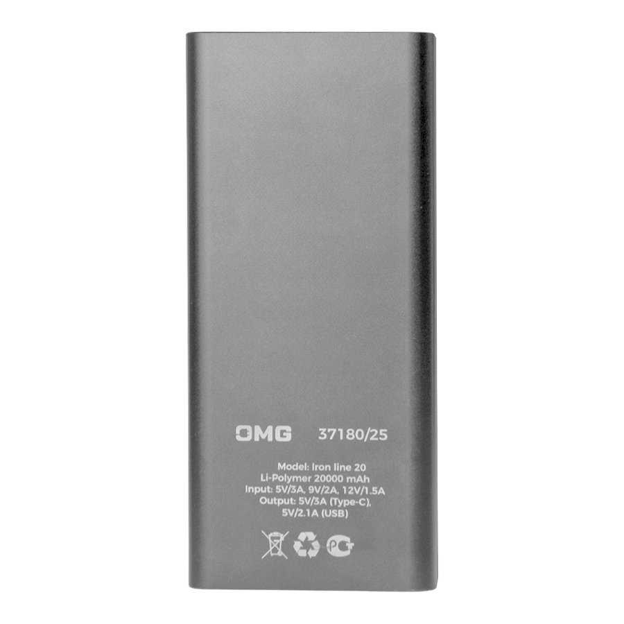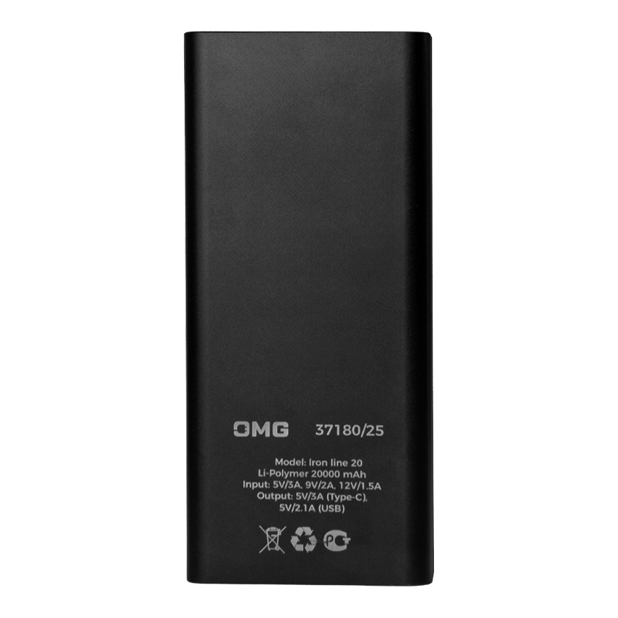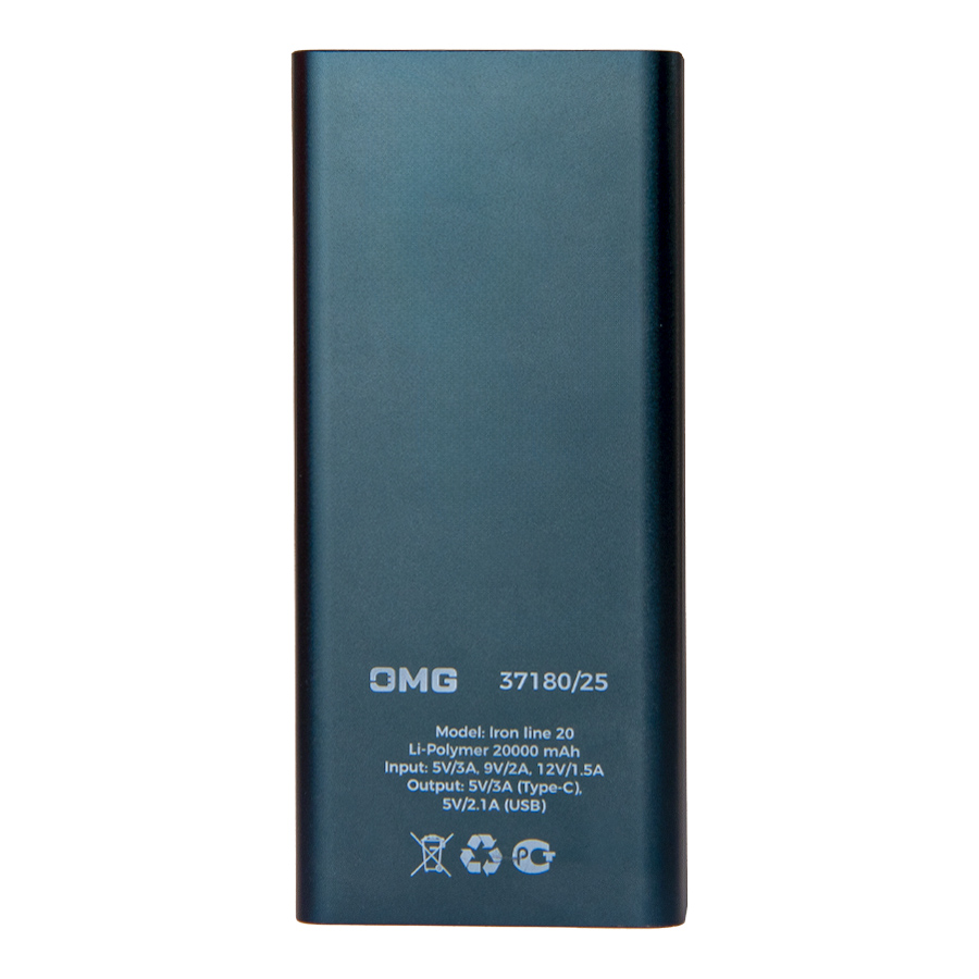 Функциональный внешний аккумулятор в стильном алюминиевом защитном корпусе. Цифровой ЖК-дисплей покажет оставшийся уровень заряда в любой момент. Пауэрбанк заряжается, как через универсальный порт Type-C, так и через Micro-USB и отдает энергию через два классических порта USB и порт Type-C. Благодаря встроенному в корпус дисплею, следить за расходом батареи очень удобно. Заряд показывается в процентах. •Емкость батареи: 20 000 мАч •Тип батареи: литий-полимер •Материал корпуса: алюминиевый сплав •Входные порты: Micro-USB, Type-C •Выходные порты: USB, Type-C •Входное напряжение / Ток: 5 В / 3 A, 9 В / 2 A, 12 В /1,5 А •Выходное напряжение / Ток: 5 В / 3 A (Type-C), 5 В / 2,1 A (USB) •Провод для зарядки в комплекте •Индикация уровня заряда батареи на ЖК-дисплее В комплект входит: 1. Универсальный аккумулятор 2. USB кабель с разъемом USB-A и Type-C для зарядки