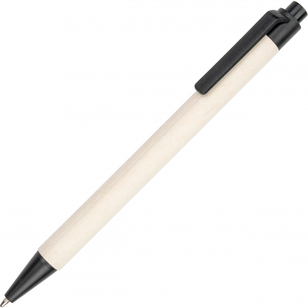 Шариковая картонная ручка с синим стержнем.