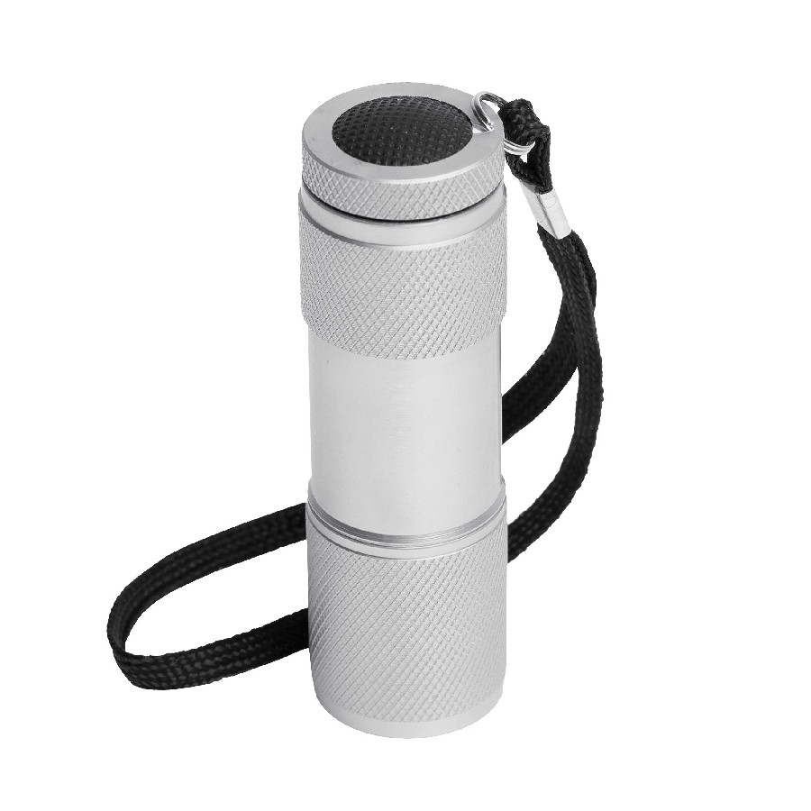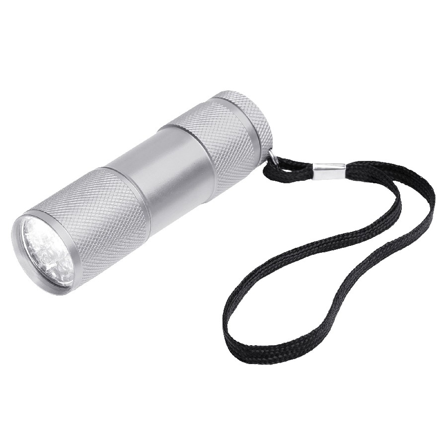 9 светодиодов; Корпус из алюминия; Темляк; Питание: батарейки ААА 1,5 В, 3 шт. (в комплект не входят).