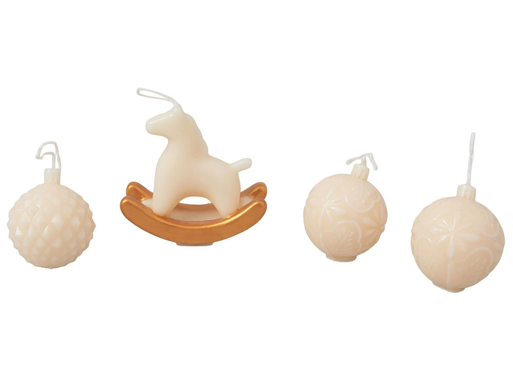 • три свечи в форме новогодних шаров