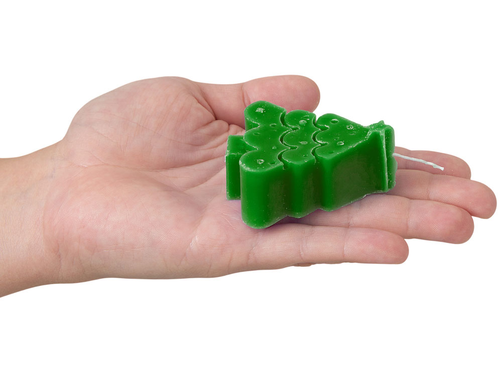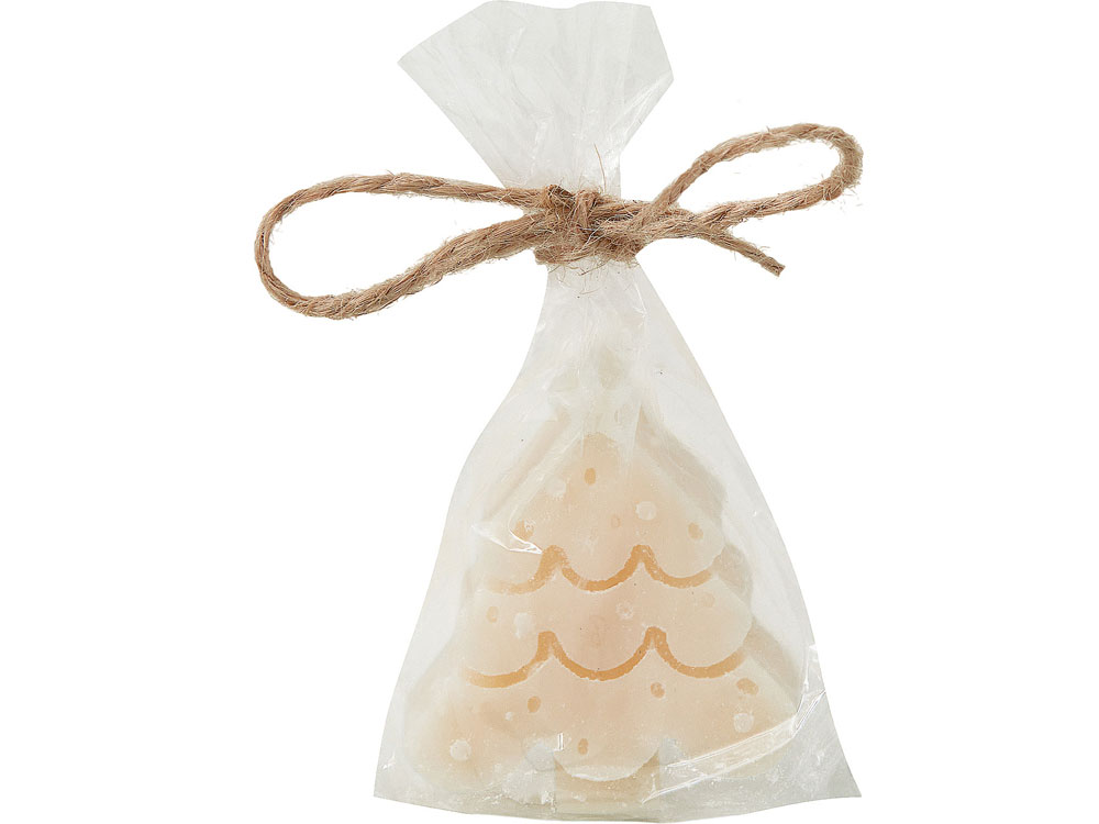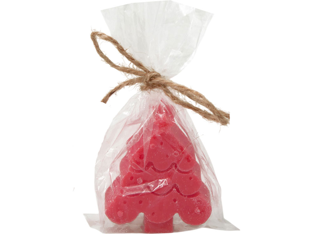Свеча «Ёлочка» из натуральных материалов без отдушек с хлопковым фитилем. Упакована в полиэтиленовый пакет.