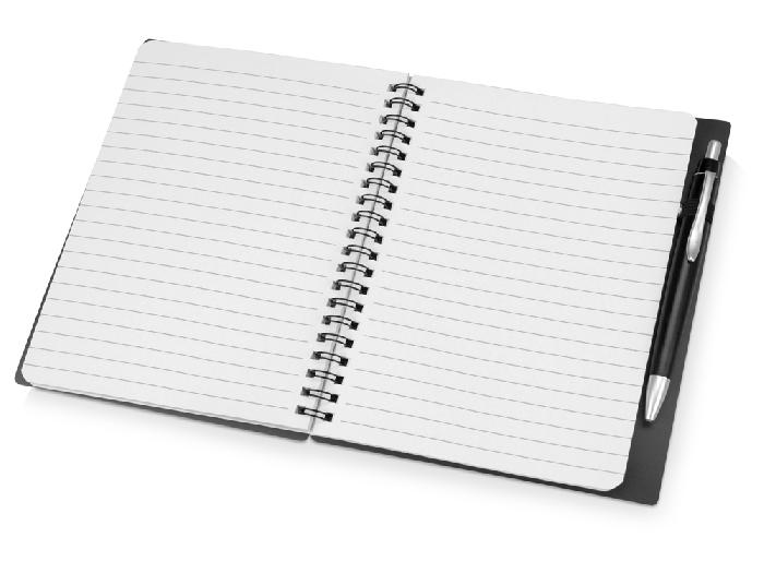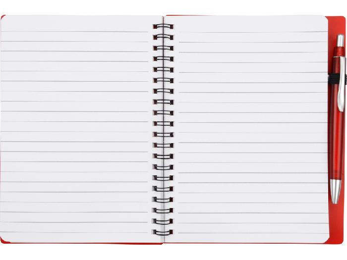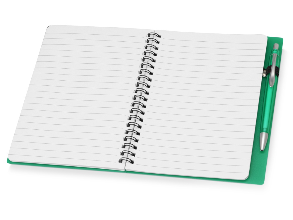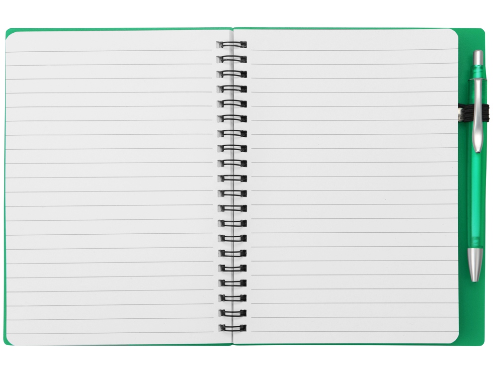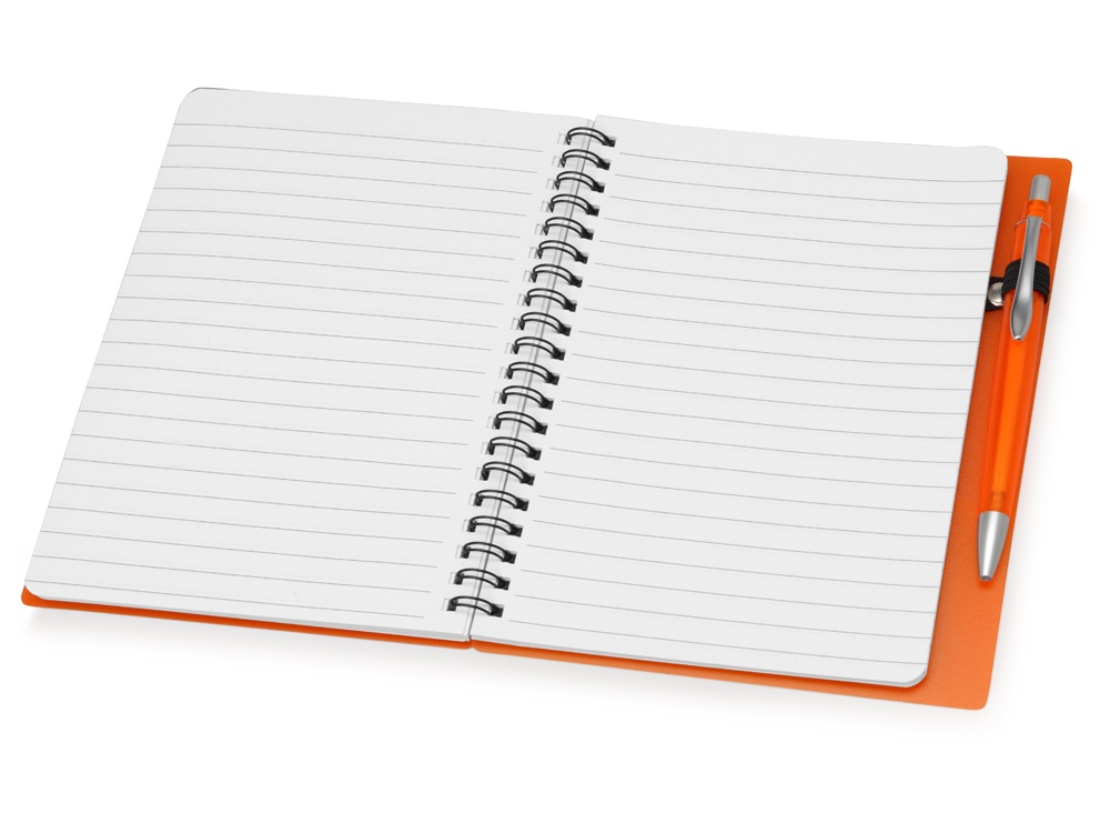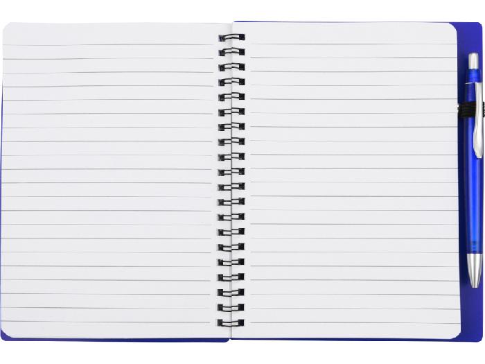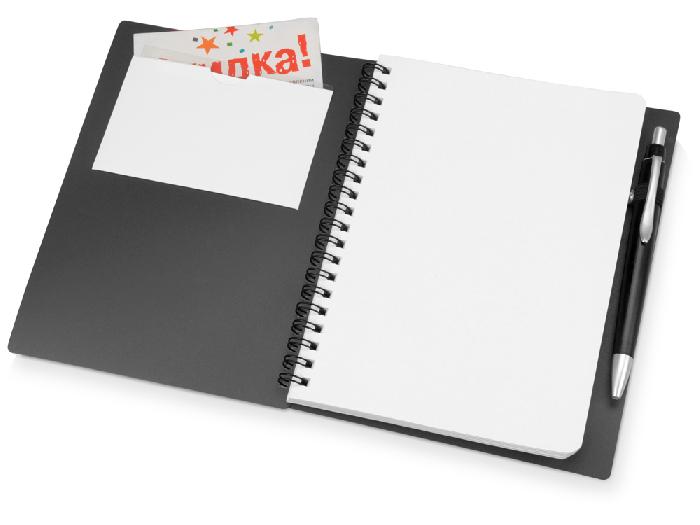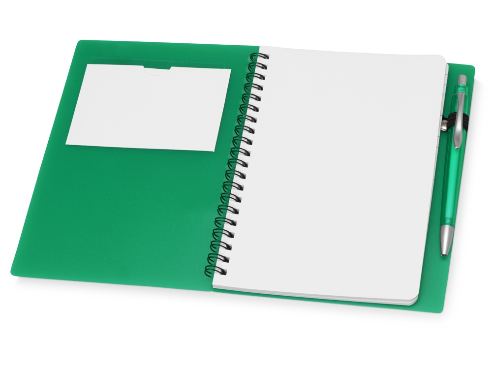 Блокнот Контакт с окошком, в которое можно поместить визитную карточку или полиграфическую вставку. Размер окошка внешний 8,4 х 4,8 см, внутренний 10 х 6,5 см. •Гибкая обложка из полипропилена. •Переплетен на пружине. •Блокнот 130 х 183 х 7 мм. •Разлиновка в линейку. •Кол-во листов 70. •Цвет бумаги белый. •Держатель для ручки резинка. •Цвет среза белый. В комплекте с блокнотом идет ручка с нажимным механизмом и синими чернилами вставляется в петельку расположенную на боковой части блокнота. •Ручка шариковая d12 х 132 мм.