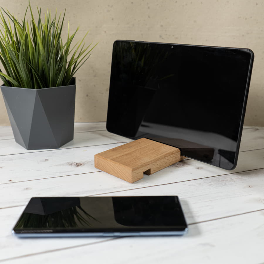 Подставка для телефона / смартфона, две разные выемки позволяют установить в держатель смартфон как в плотном бронечехле, так и без него, при этом смартфон будет хорошо зафиксирован, выполнен из премиум материала бук. Материал отличается следующими преимуществами: •Прочность - премиум материал дерева Бук. •Безопасность - обладает противомикробными свойствами, не вызывает аллергических реакций. •Простой в уходе - моется теплой водой, допускается использование средств для мытья посуды. •Экологичность - натуральное и безопасное сырье. •Удобство - устойчив на любых плоских поверхностях, включая диваны и кровати.