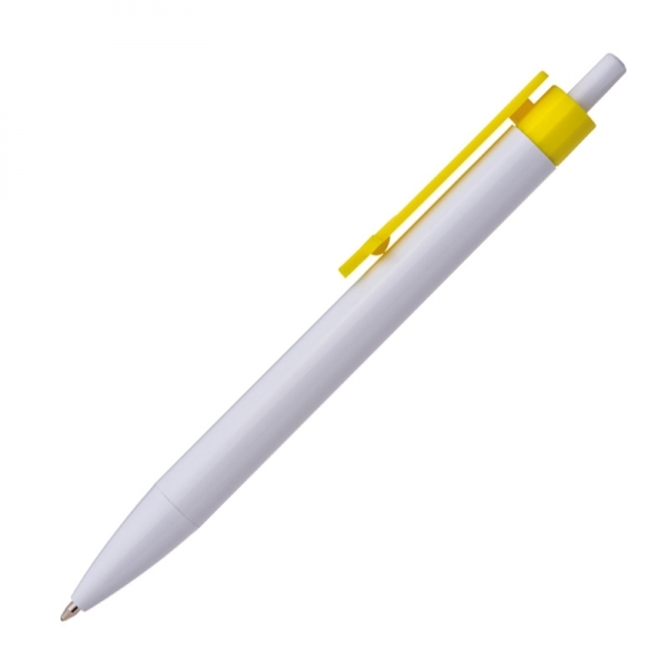 Белая, пластиковая ручка CrisMa со звёздой идет с синим стержнем.