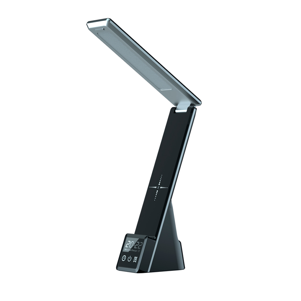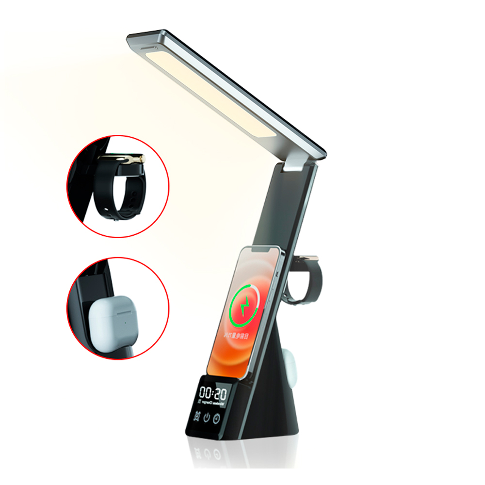 Настольная лампа с беспроводными зарядками, часами и будильником Zeus