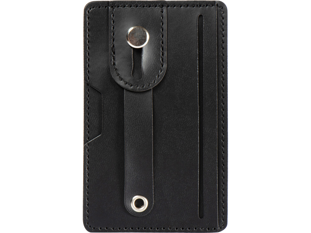 Клейкая лента на обратной стороне бумажника позволяет крепить его к смартфону с плоской задней поверхностью, а ремешок позволяет удобно держать телефон в руке.