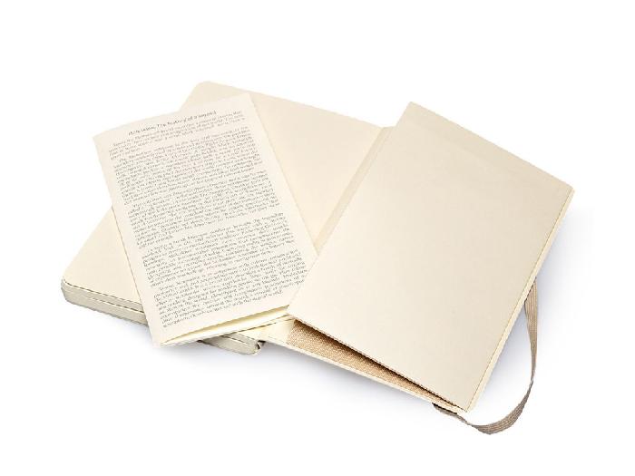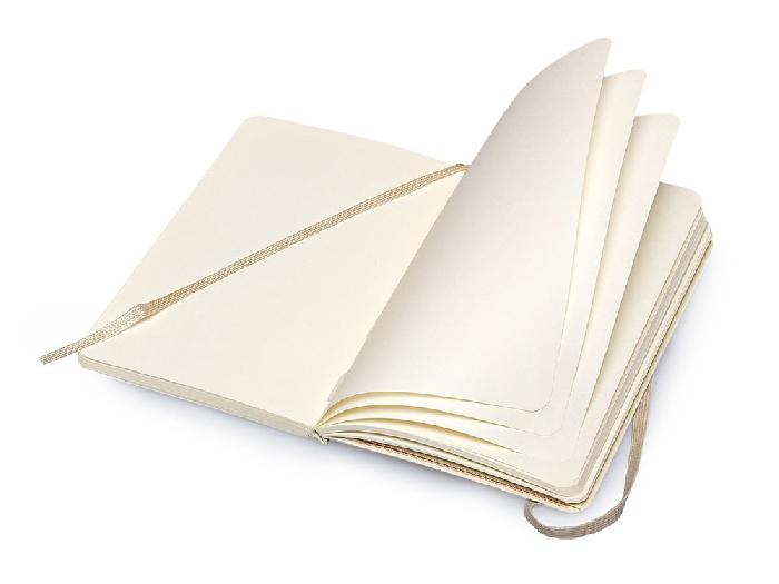 Записная книжка в мягкой, но прочной обложке приспосабливается к движениям тела и легко помещается в карман. Она станет для тебя надежным спутником в путешествии и идеально подойдет для записи мыслей и заметок. Этот продукт выполнен в шитом переплете с мягкой обложкой со скругленными углами, с нелинованными листами из бескислотной бумаги, закладкой, эластичной застежкой и вместительным внутренним карманом, куда вложена открытка с историей Moleskine.