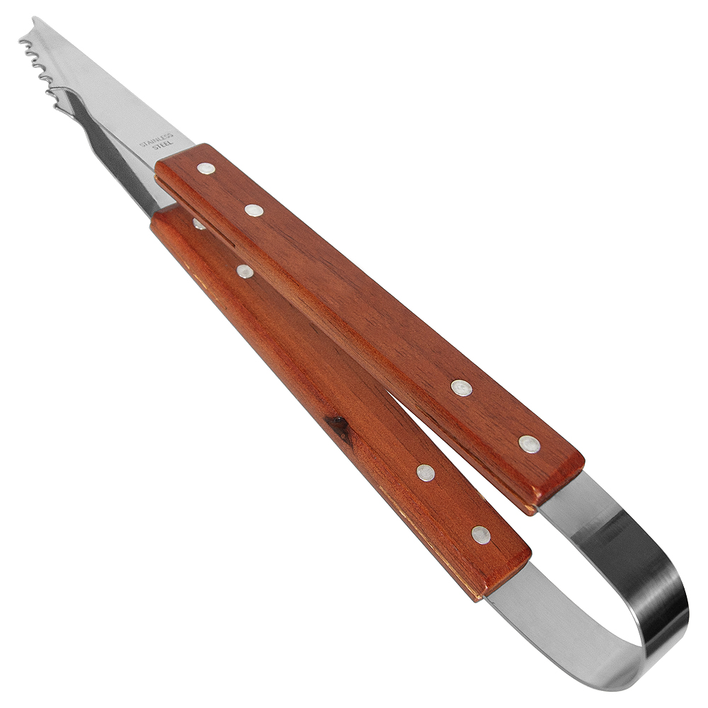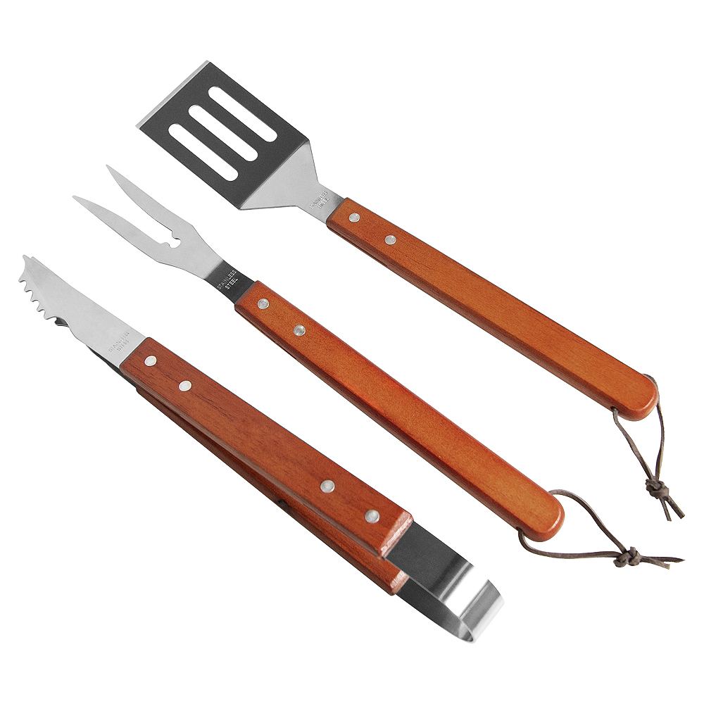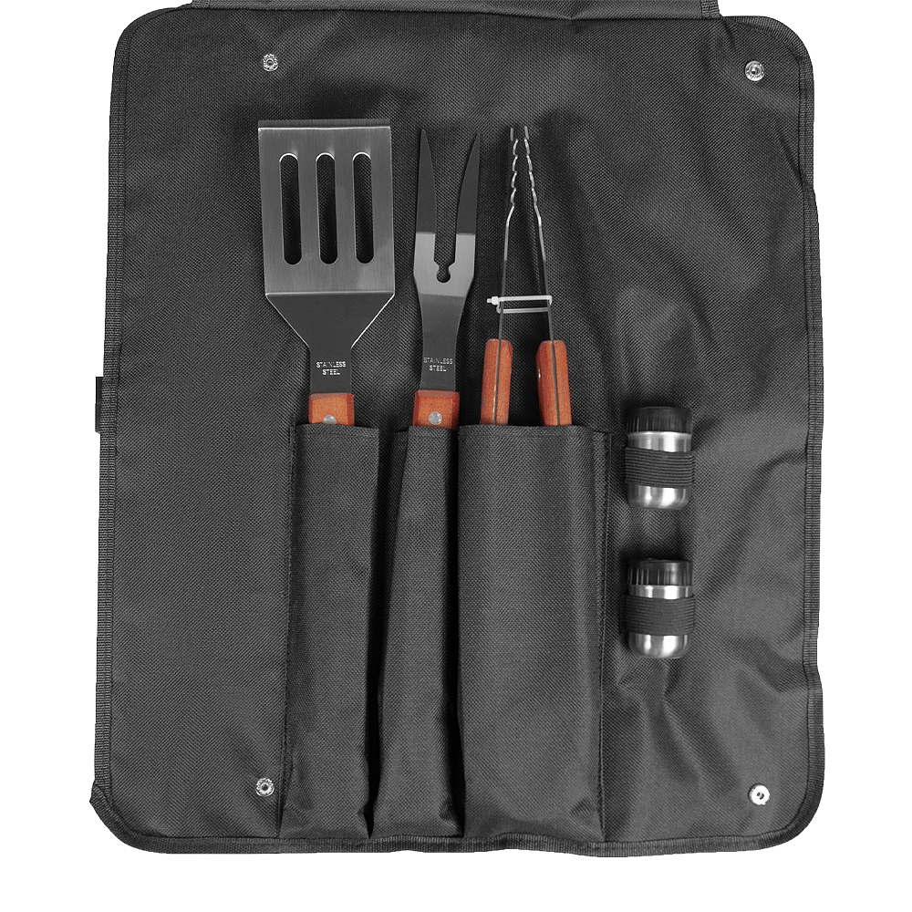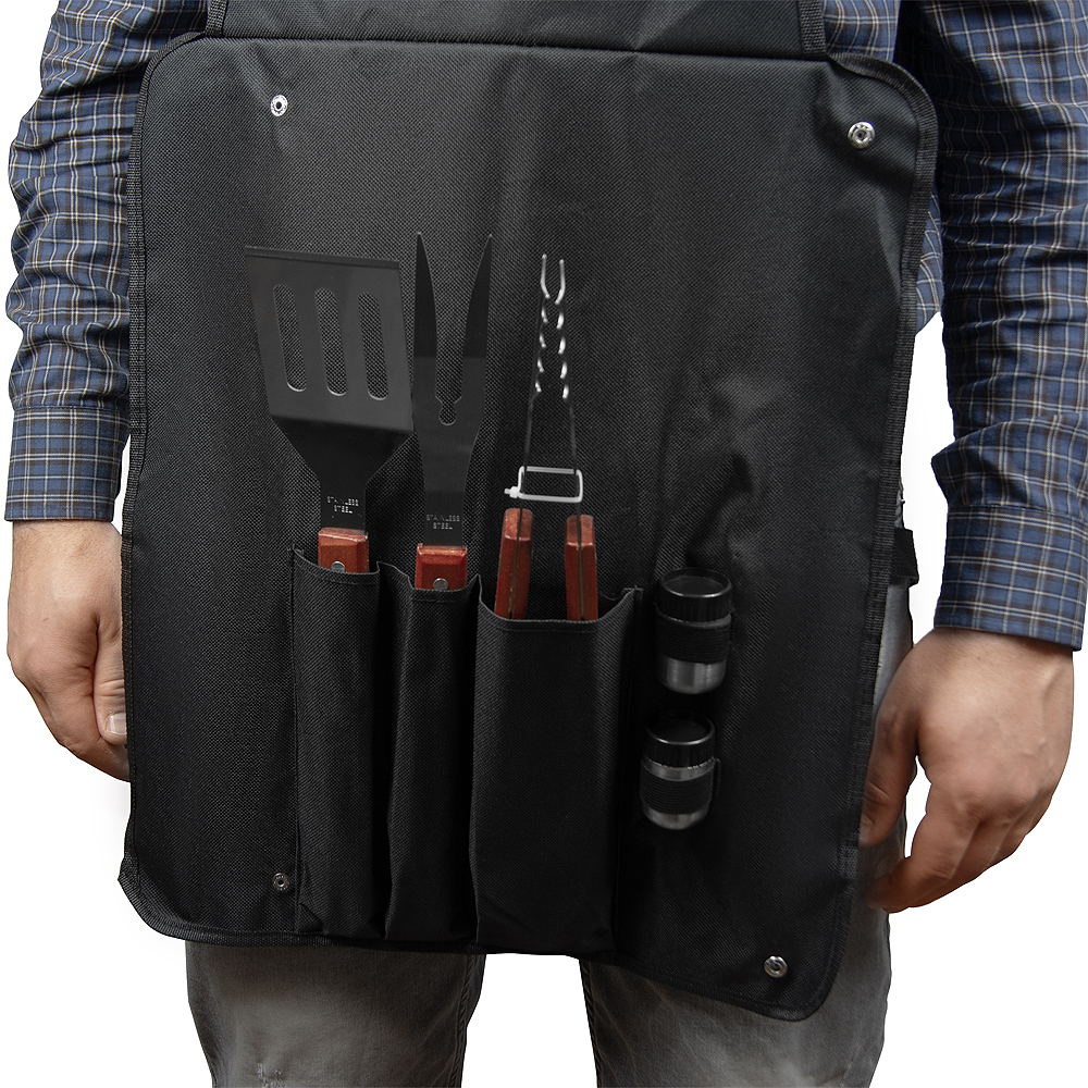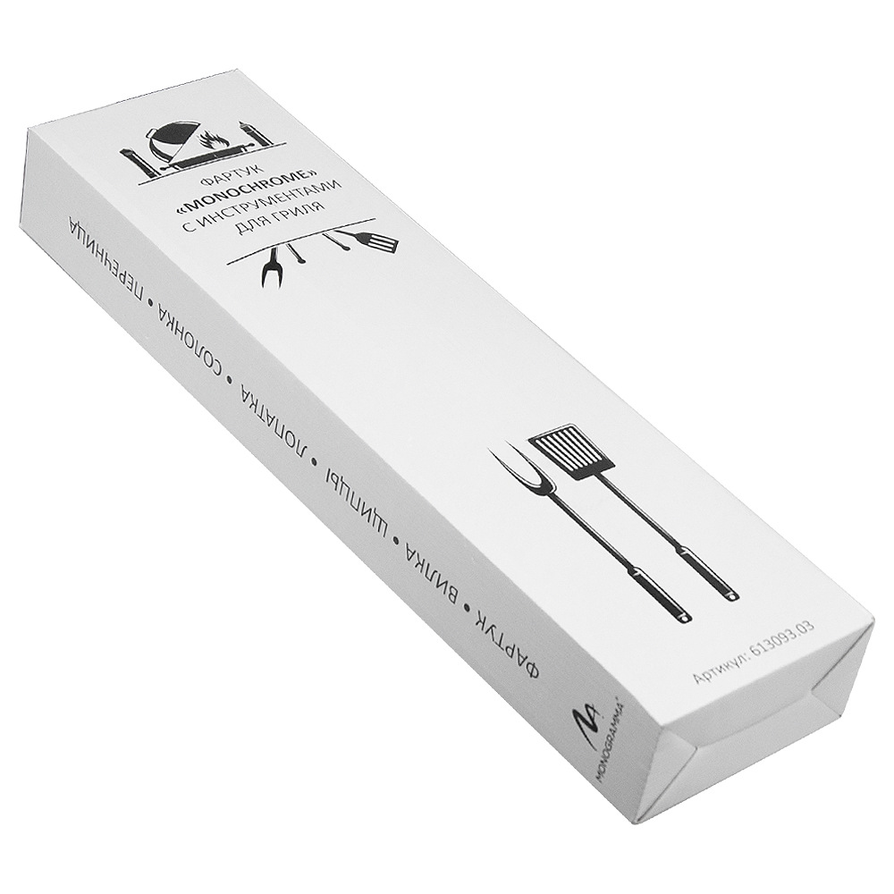 Набор инструментов для гриля из шести предметов. Инструменты выполнены из нержавеющей стали (марка 2cr13). Рукоятки выполнены из резинового дерева. Состав инструментов: - Щипцы (длина: 39 см.) - Лопатка (длина: 39 см.) - Вилка (длина: 37 см.) - Солонки/перечницы x2 - Фартук из полиэстера OXFORD 600D Толщина стальных предметов: 1.5мм. Удлиненный ремешок (160 см. на поясе). Упаковка: коробка подарочная с логотипом МОНОГРАММА Размер подарочной коробки: 50,4х13,6х6,5 см