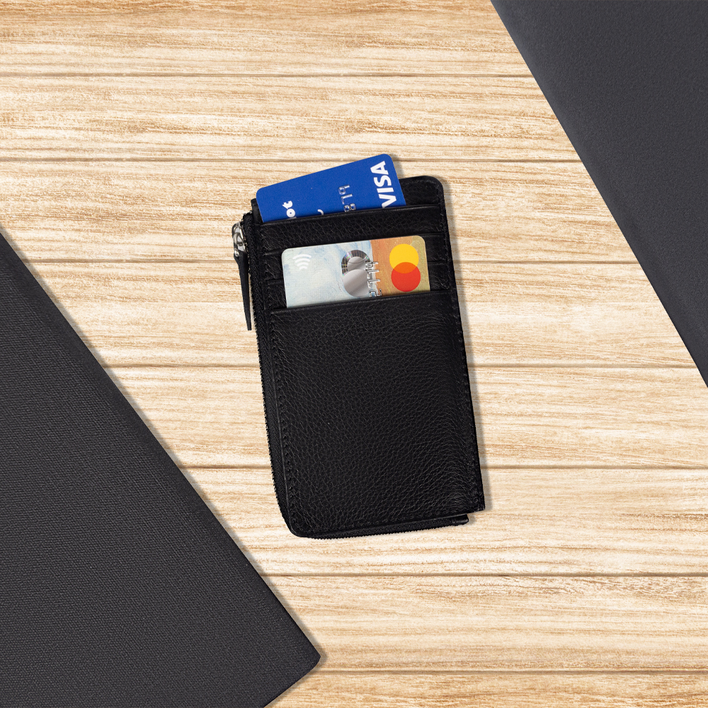 Универсальный футляр для кредитных карт и монет/картхолдер Leather Life из нат. кожи, черный