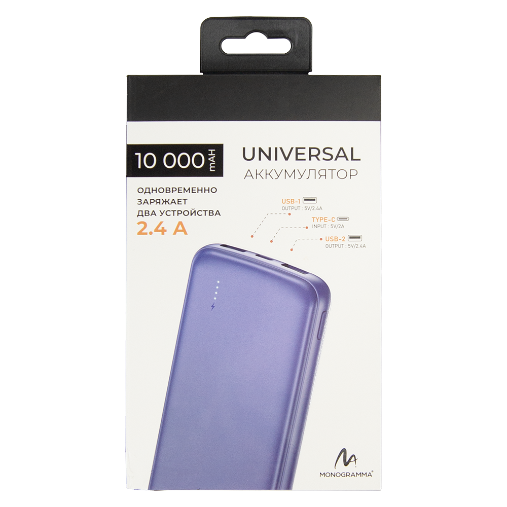 Внешний аккумулятор «Universal», 10 000 mAH, 5V 2.4 A ,черный
