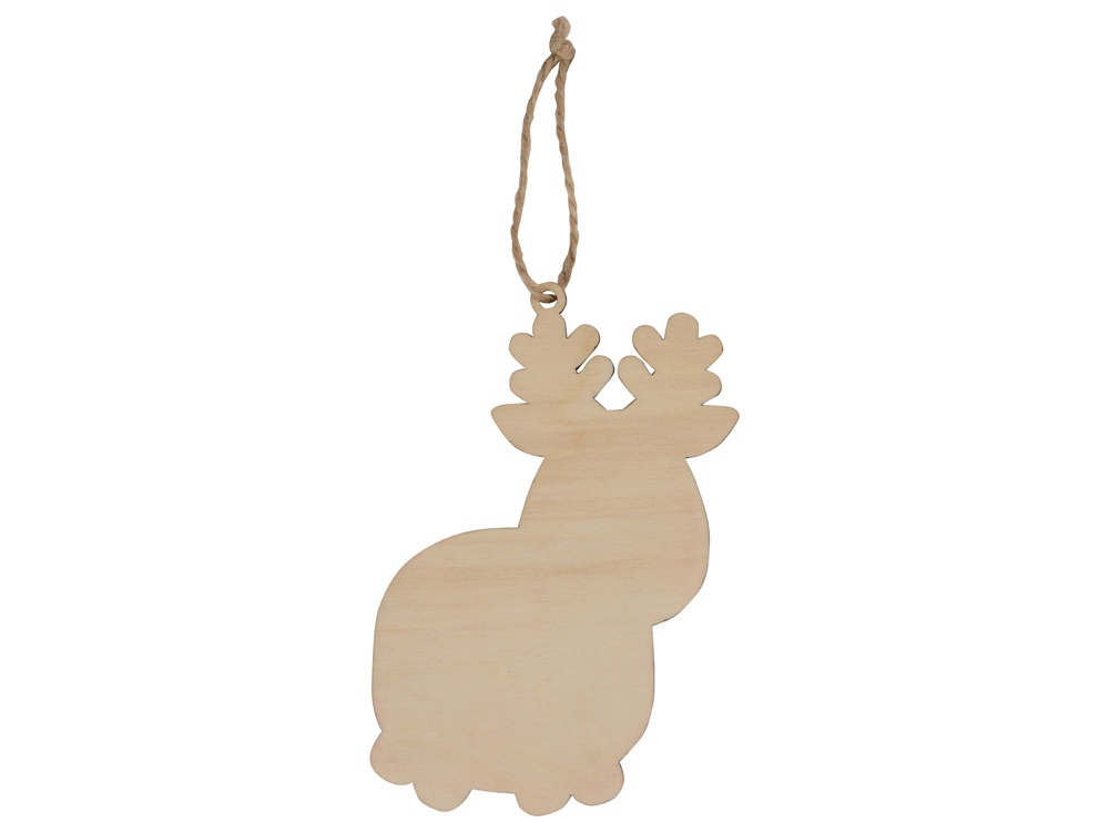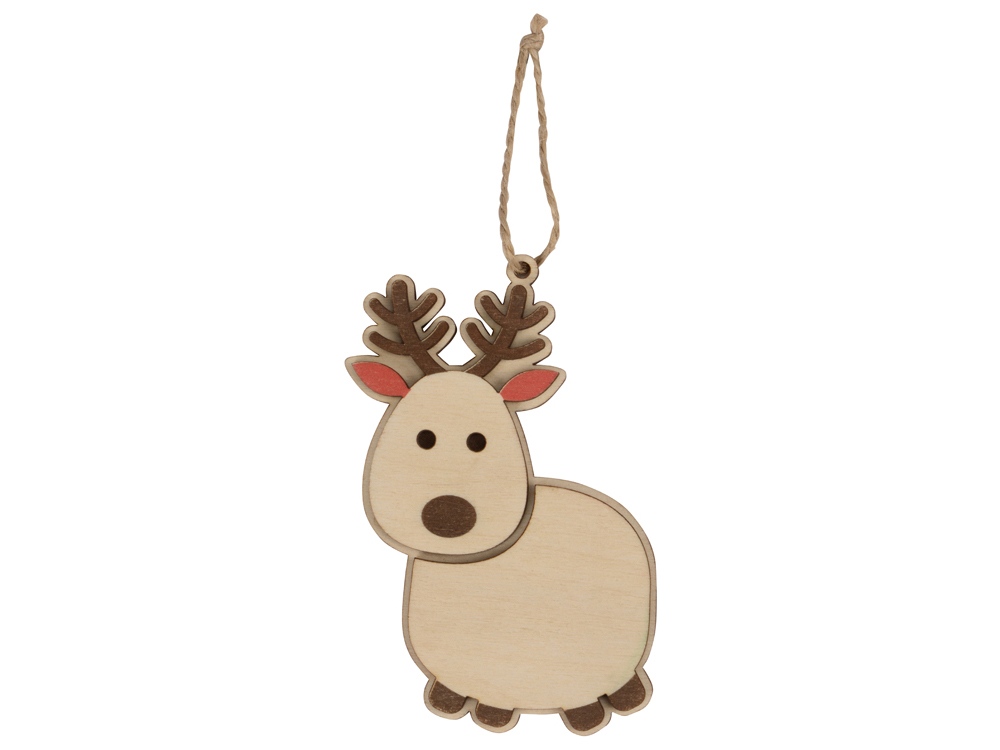 Елочная игрушка в виде праздничного символа - новогоднего оленя. Изготовлен из нескольких слоев березовой фанеры и украшен тонировкой.