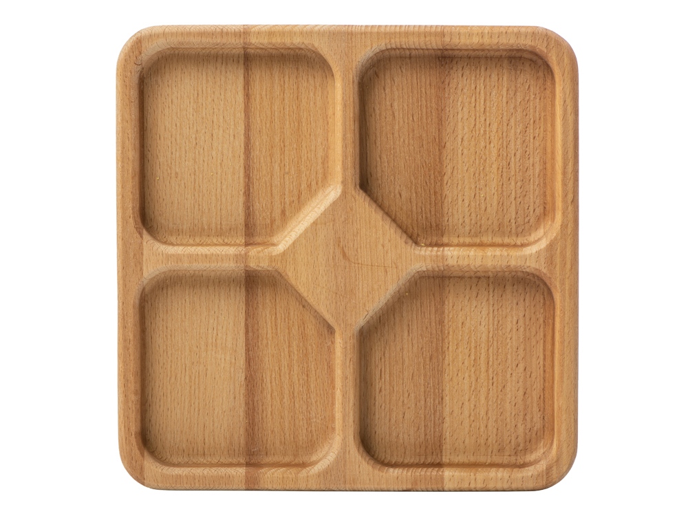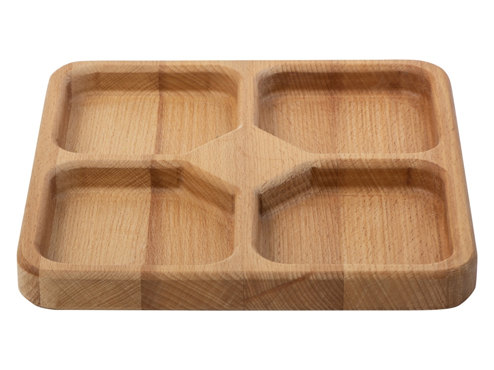 Квадратная менажница из натурального бука идеально подходит для подачи закусок, орехов, сыра, оливок и других снеков, подаваемых в масле либо сухими. Четыре вместительные секции позволяют подать различные виды закусок без смешивания, чтобы вы могли насладиться вкусом и красивой подачей каждого из них. Бук не царапает столешницу, в том числе и стеклянную, мягко приземляясь на стол, и красиво обрамляет поданные закуски. Менажница уже обработана минеральным пищевым маслом, которое придает изделию свежий вид. - 4 вместительные секции - натуральный материал, хранящий тепло природы - не царапает столешницу - для раздельной подачи разных видов закусок, сыров и снеков Натуральный бук, из которого выполнена менажница, как и любое дерево, требует ухода, который существенно продлит ему жизнь и позволит радовать своего обладателя в течение многих лет. Пропитывание пищевым маслом растительное, льняное и т.д. раз в один-два месяца поможет менажнице сохранять свежий вид. Рекомендации по использованию: - не рекомендуется использовать в посудомоечной машине, микроволновой печи, замачивать в раковине с водой; - не использовать агрессивные моющие средства; - использовать мягкую губку для очищения; - вытирать насухо после мытья.