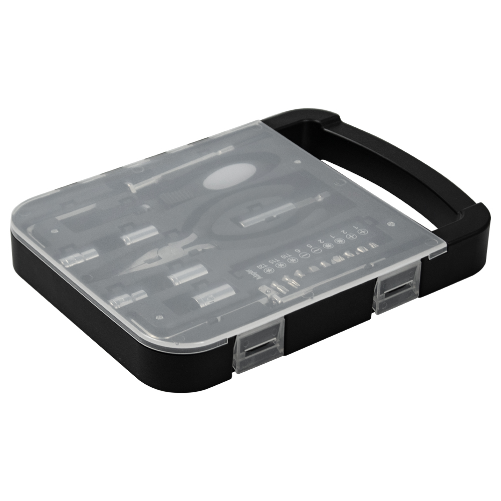 Набор инструментов Tools Unitrade — это идеальный комплект для выполнения различных ремонтных и монтажных работ. В этом наборе собрано 22 инструмента, которые помогут вам справиться с любыми задачами. Компактный и прочный пластиковый кейс обеспечивает надежное хранение и удобную транспортировку инструментов.