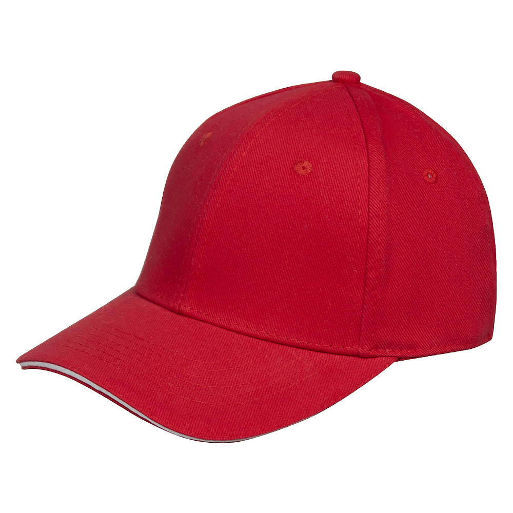 Кепка 6-панельная Oxford 300, c белым сендвичем, красная