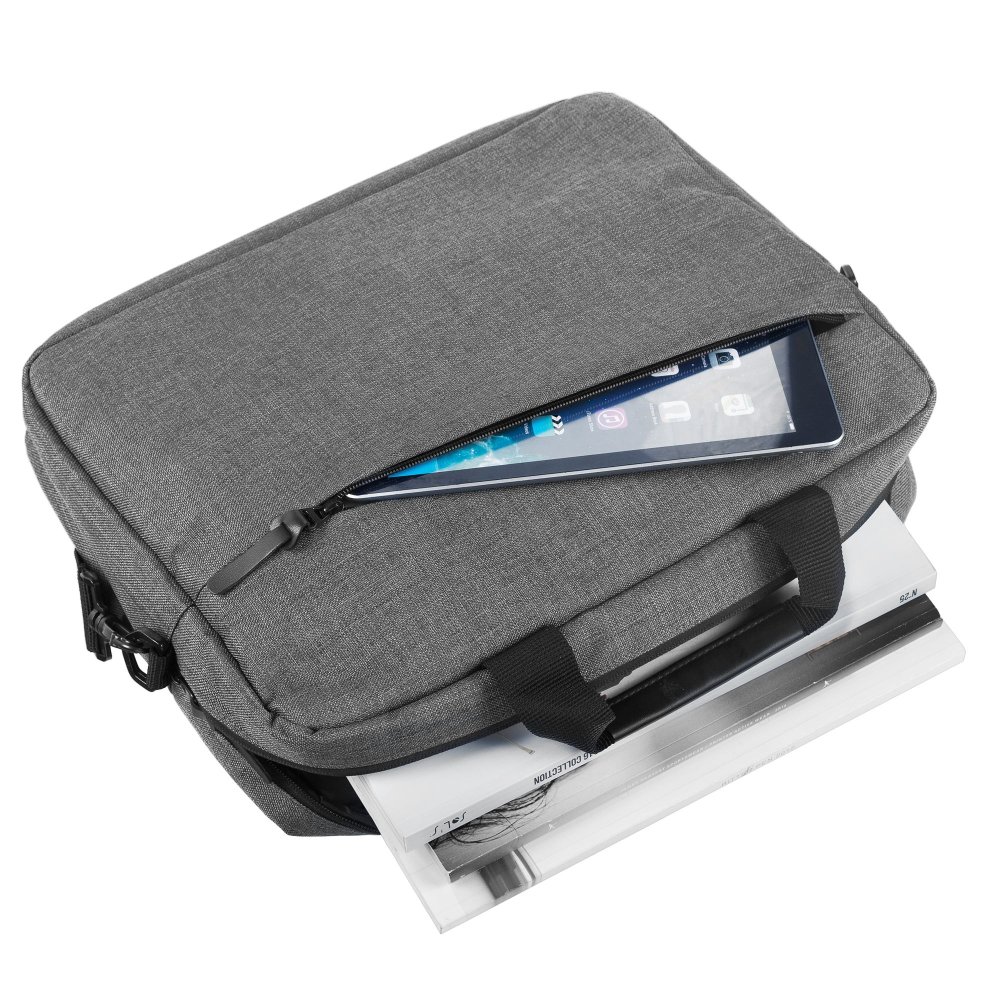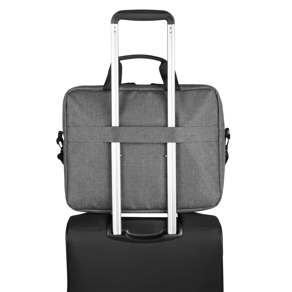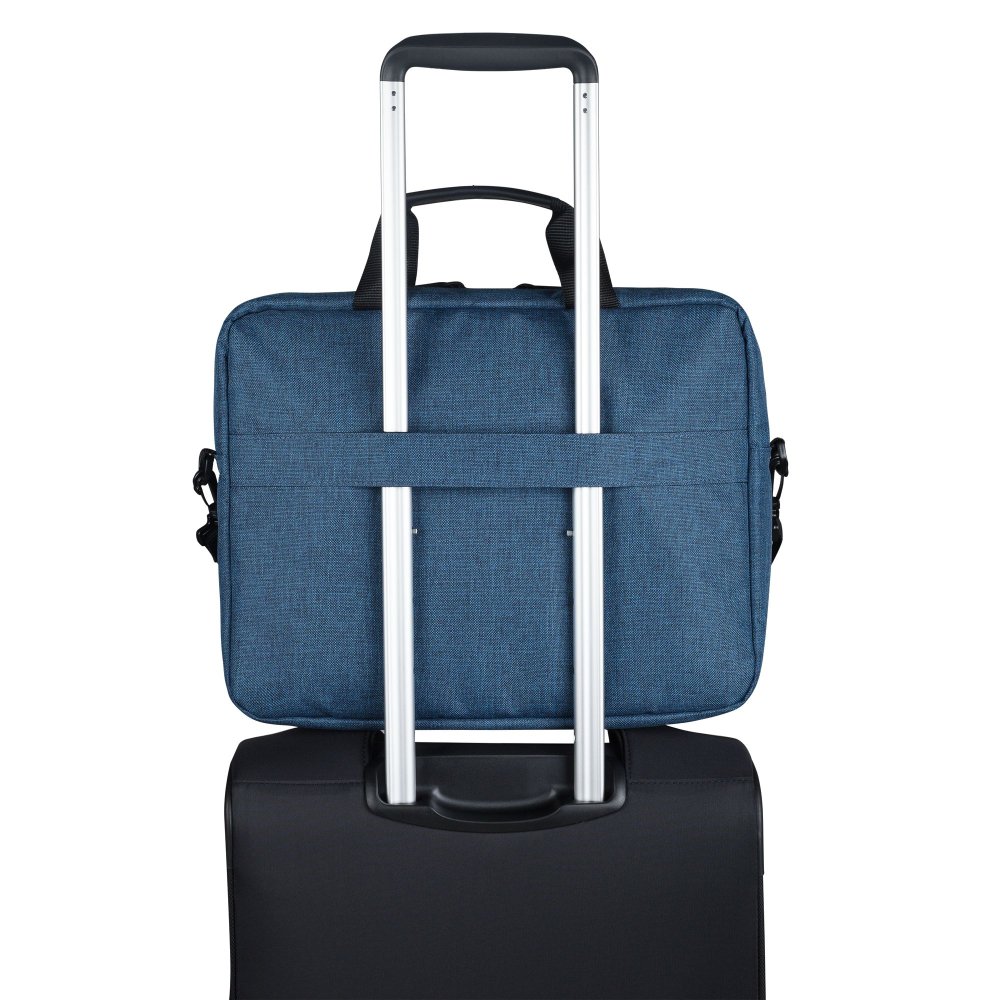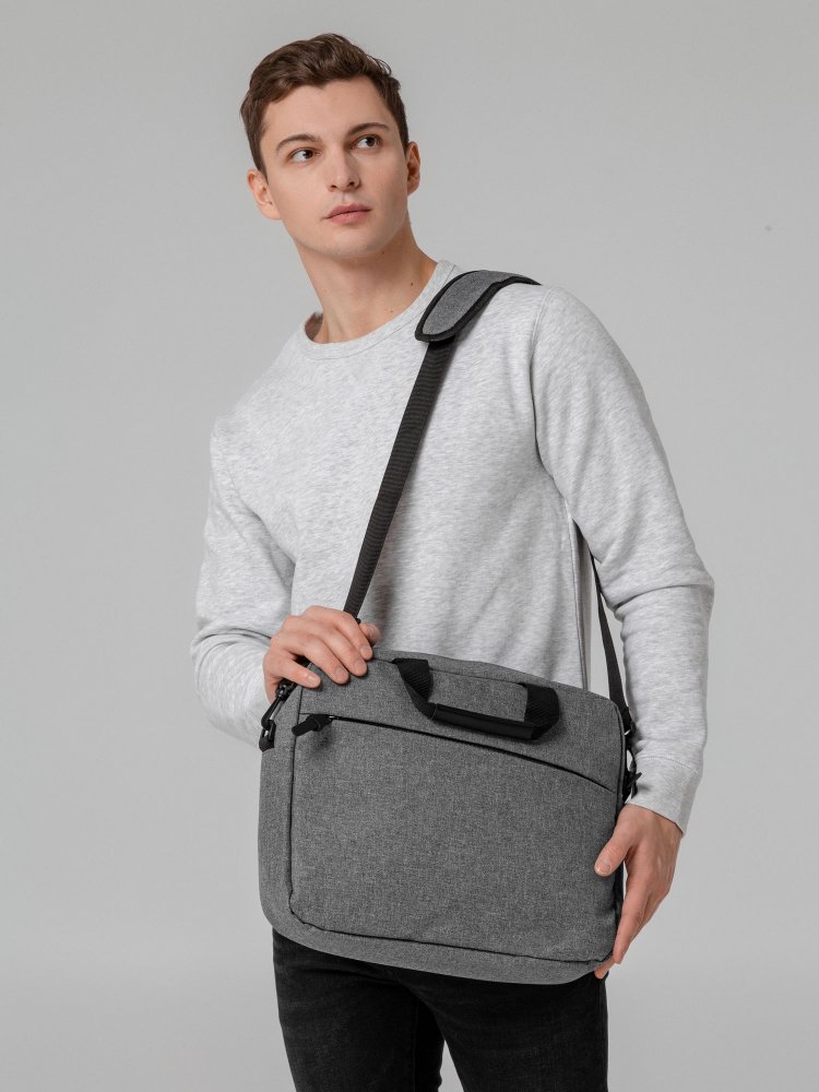 Вместительное основное отделение на молнии Карман для ноутбука с мягким уплотнителем Два внутренних кармана для мелочей Съемный плечевой ремень с мягкой накладкой Система крепления к выдвижной ручке чемодана