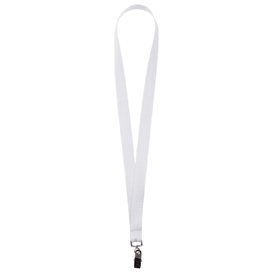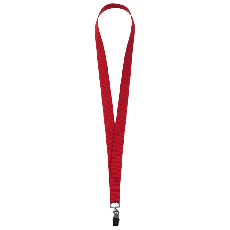 Бейдж крепится к ленте с помощью металлической клипсы.