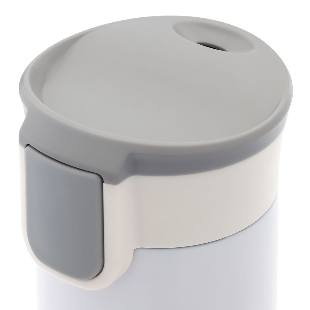 Двухслойная вакуумная конструкция из нержавеющей стали сохраняет напиток горячим не менее 3 часов, холодным — не менее 5 часов. •Емкость 300 мл. •Крышка полностью герметична — стакан можно переворачивать. •Специальная герметичная система JustPushTheButton: чтобы открыть клапан для питья, нужно нажать и удерживать кнопку пальцем. •Крышка EasyWash разборная, что облегчает ее мытье и чистку. •Крышку можно мыть в посудомоечной машине, корпус рекомендуем мыть вручную. •Термостакан подходит для большинства автомобильных подстаканников. Из-за технологических особенностей процесса круговой гравировки нанесение встык не производится.