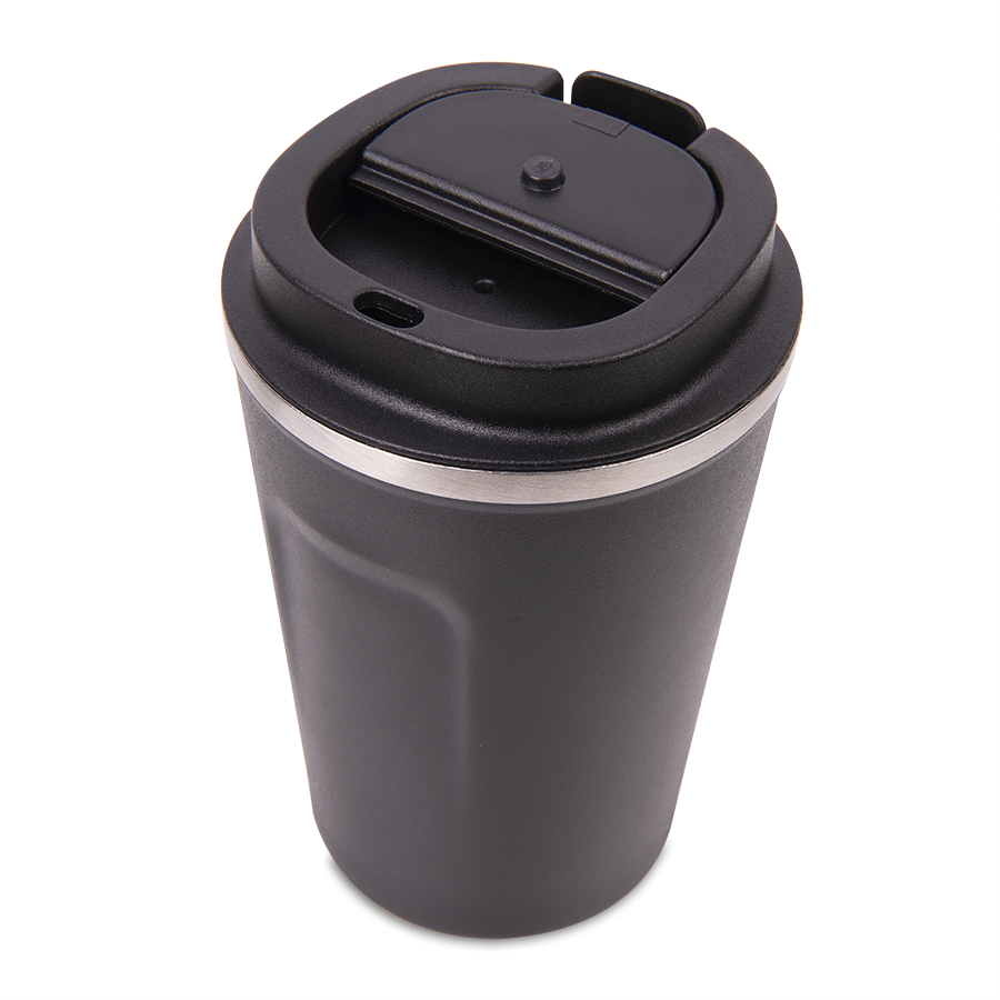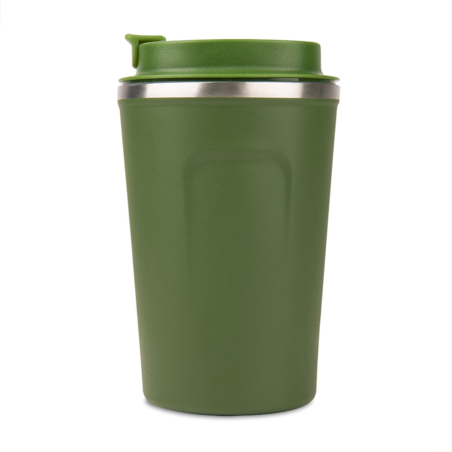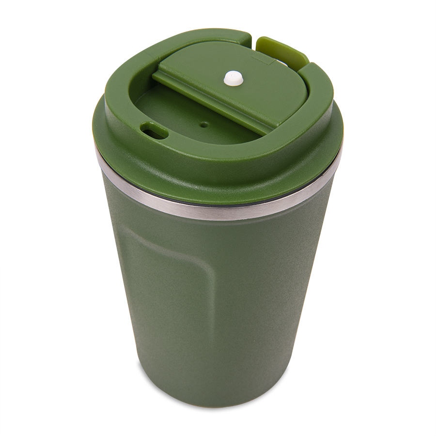 Термокружка-непроливайка с двойными стенками с откидным клапаном для питьяКолба и корпус из нержавеющей стали.Матовая микрорельефная фактура корпуса достигается благодаря особому покрытию - powder coatingЭто специальное порошковое окрашивание, более прочное и долговечное nbsp;Сохраняет температуру напитков до 3-4 часов.Индивидуальная упаковка - коробка из крафтового картона