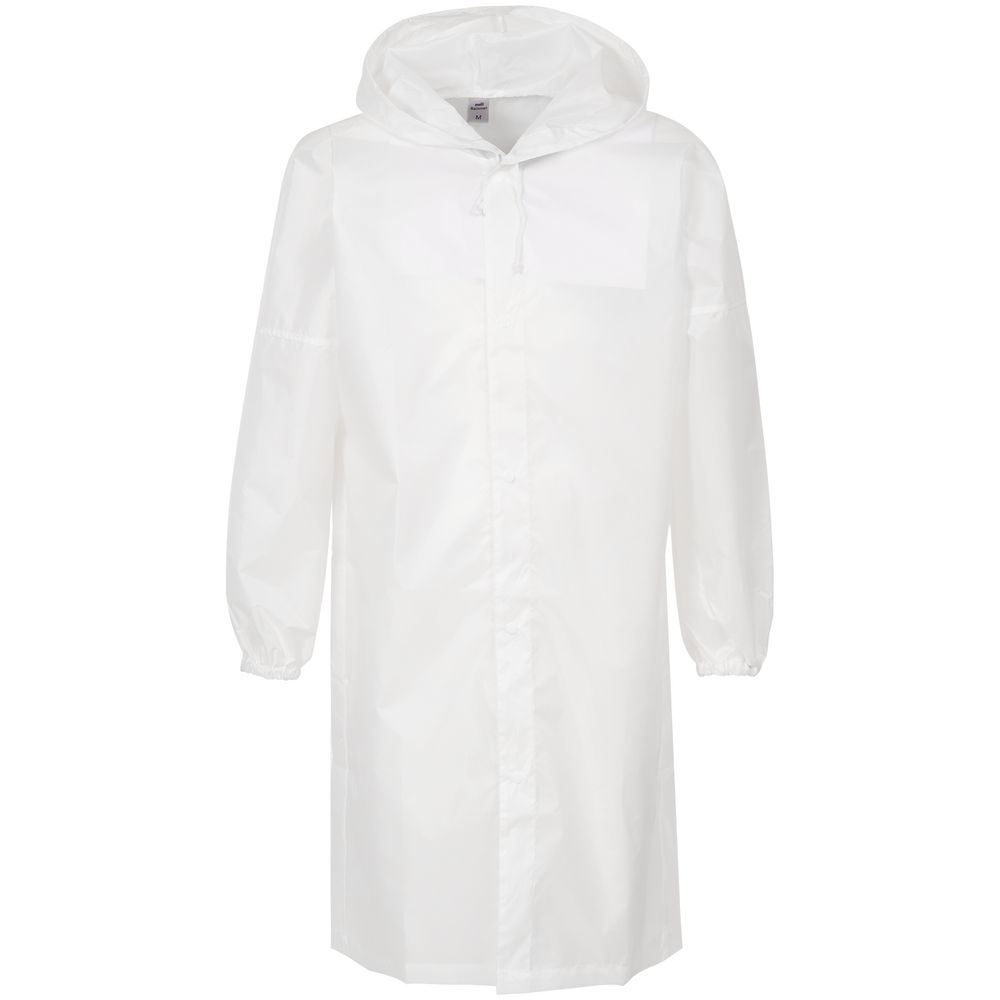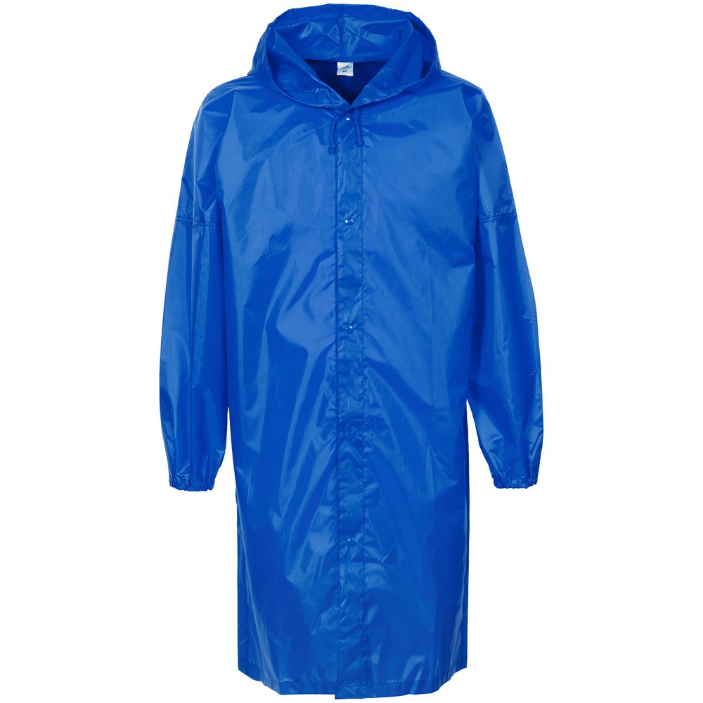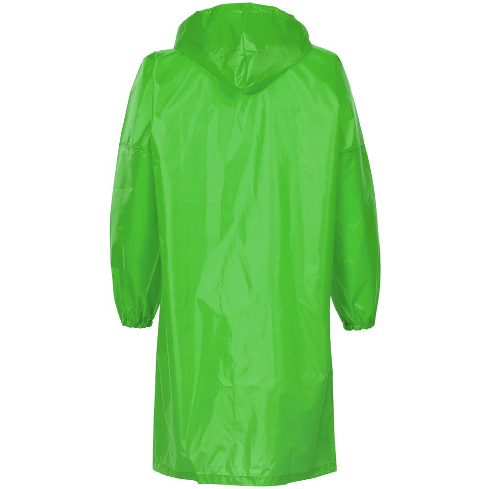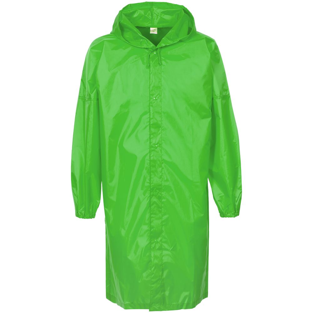 Плащ-дождевик из ткани таффета на кнопках с капюшоном. Удлиненная модель. Прямой крой. Спущенный рукав. Манжеты на резинке. Утягивающий шнур в капюшоне.