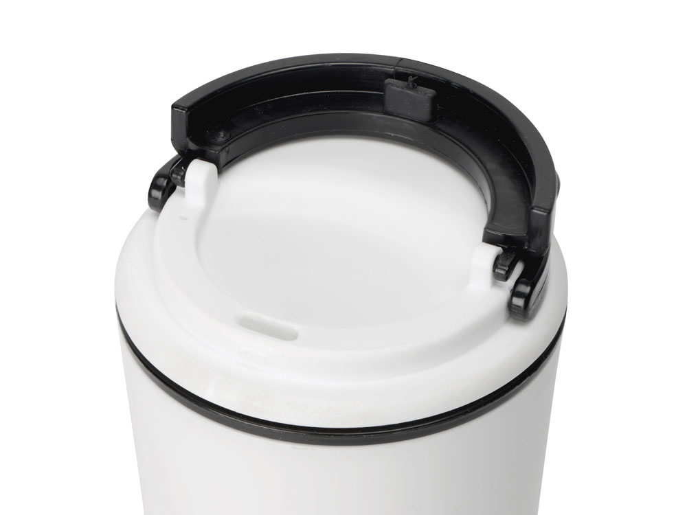 Многоразовый стакан-тамблер для горячих и холодных напитков. Двойные стенки сохраняют напиток теплым и не дают напитку обжечь руки. Конструкция крышки тамблера оснащена надежным клапаном, который предотвращает проливание жидкости. Крышку легко закрыть и открыть одной рукой даже во время движения. Крышка оснащена специальной защелкой, позволяющей зафиксировать чайный пакетик. Оптимальный объем 350 мл позволит взять с собой кофе или чай. Тамблер помещается в подстаканник для автомобиля. Сделан из безопасного материала, который не влияет на вкус и аромат.