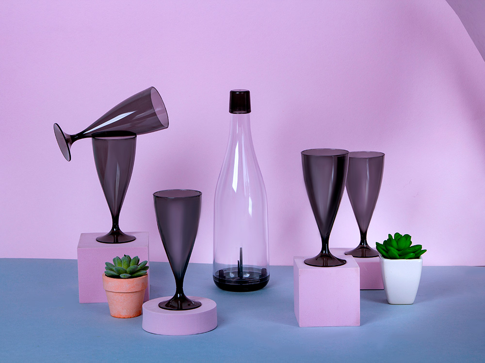 Многоразовые пластиковые бокалы Party позволят сохранить эстетику употребления вина даже на природе. Они лёгкие и имеют разборную конструкцию, благодаря которой их легко сложить один в другой для экономии места. Бокалы упакованы в пластиковую бутылку со съёмным дном, которую удобно брать с собой на пикники. • Стильный дизайн • Лёгкие • Удобная упаковка, не занимает много места • Съёмная ножка