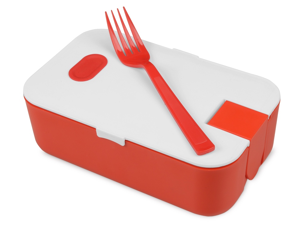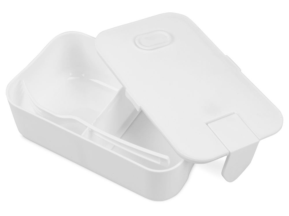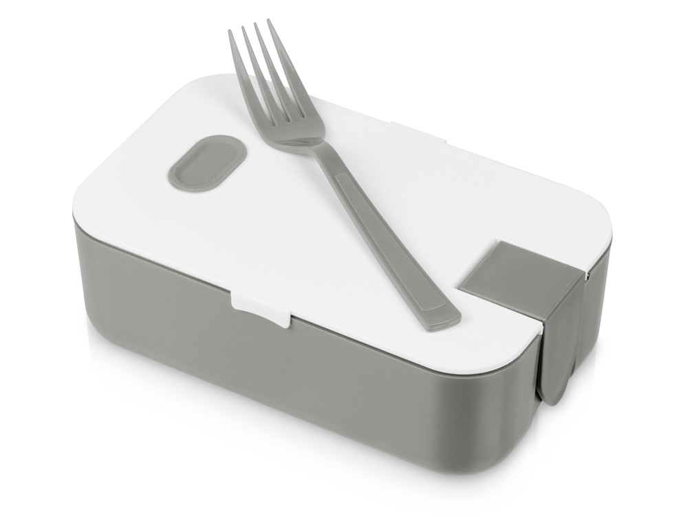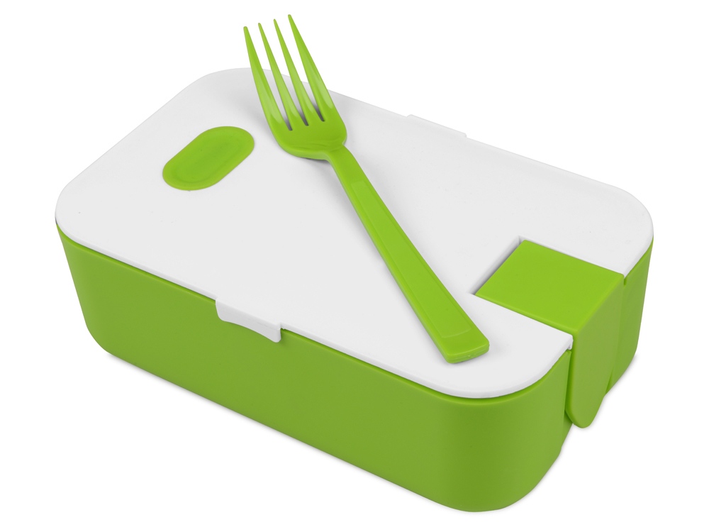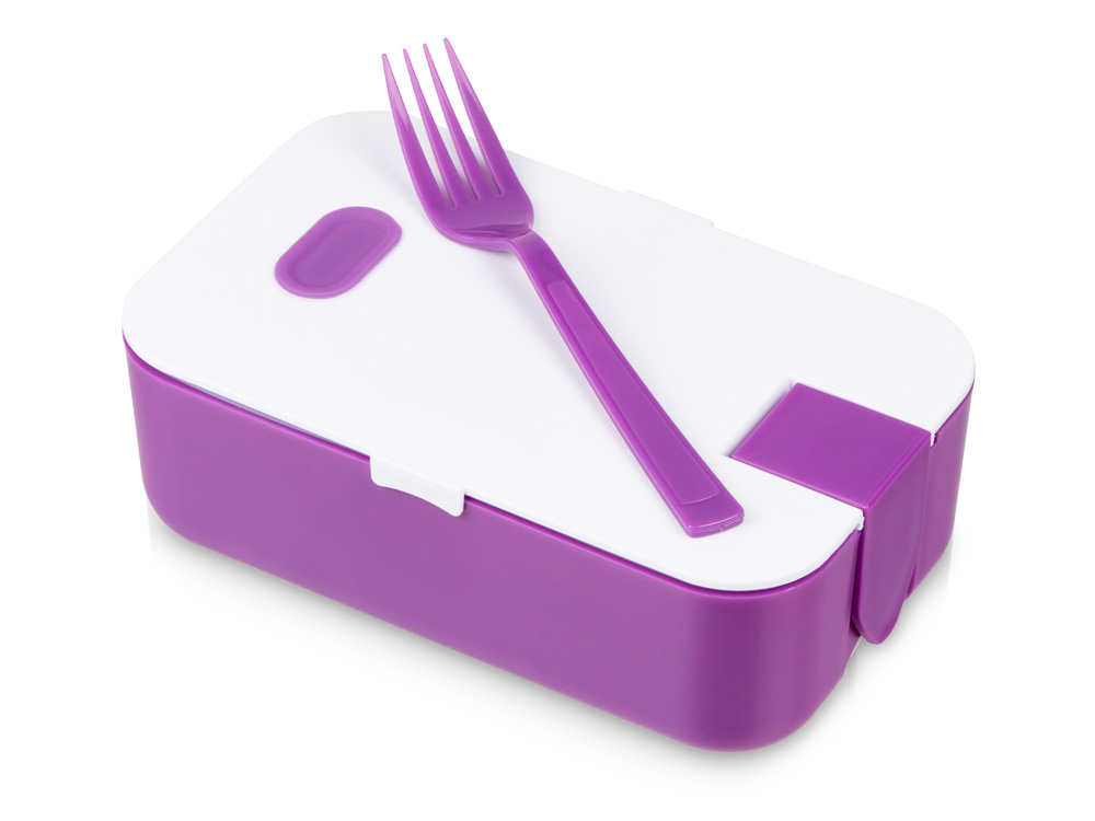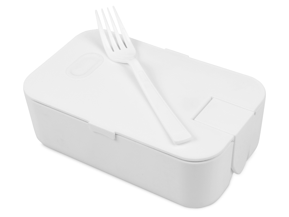 •Внутри прочной пластиковой емкости находятся снимаемая перегородка и вилка.