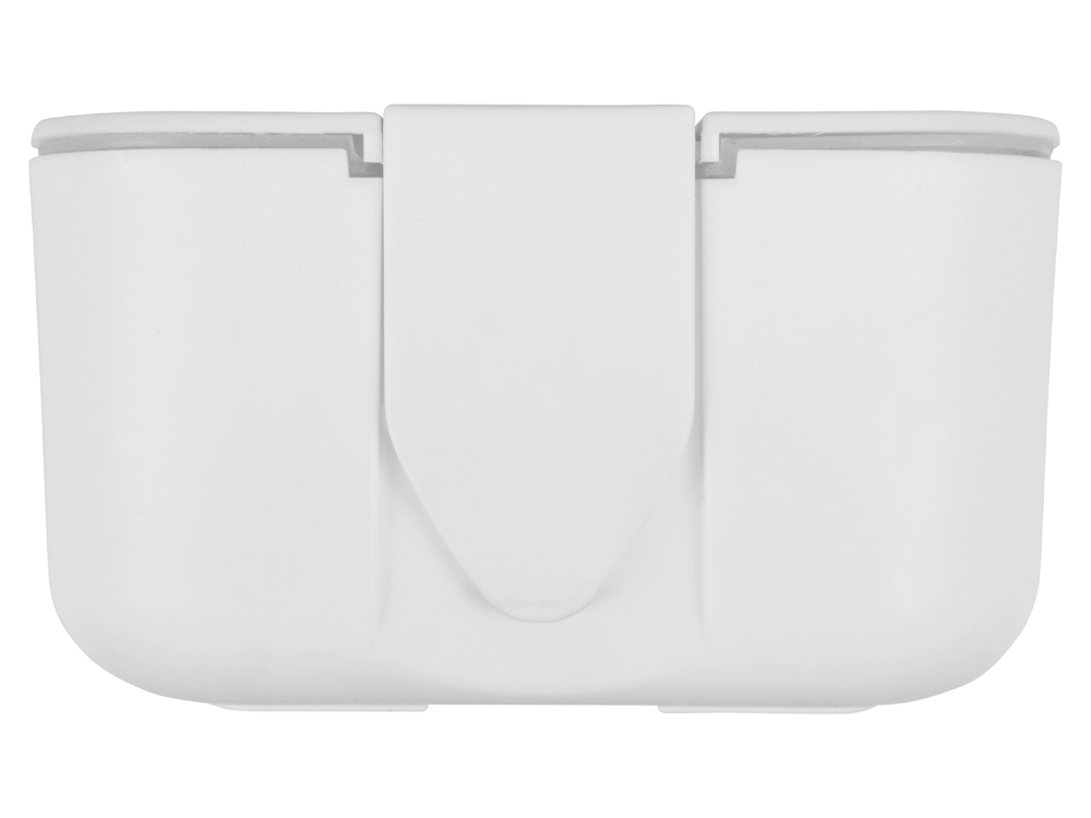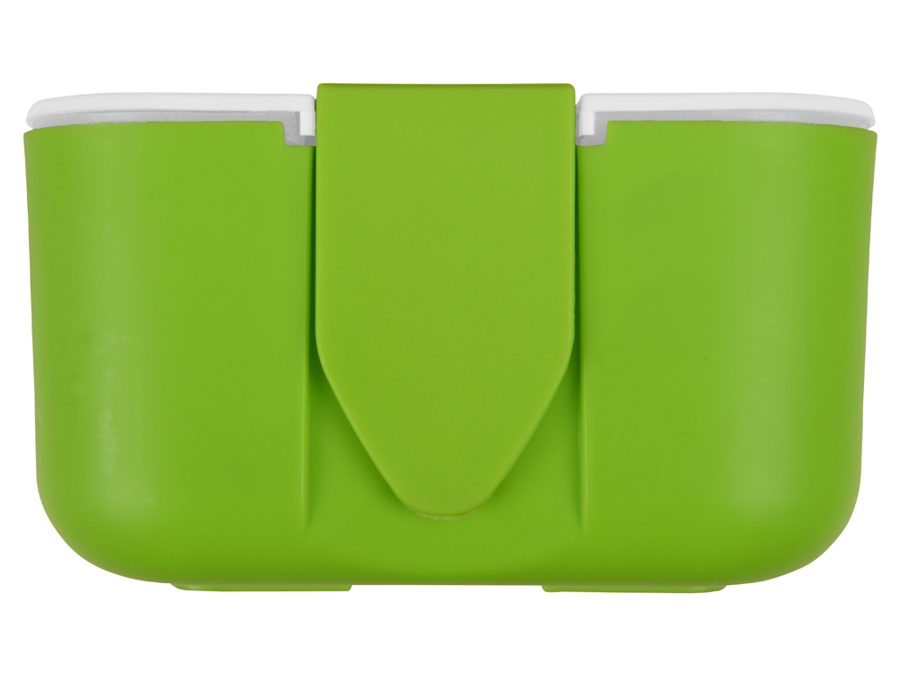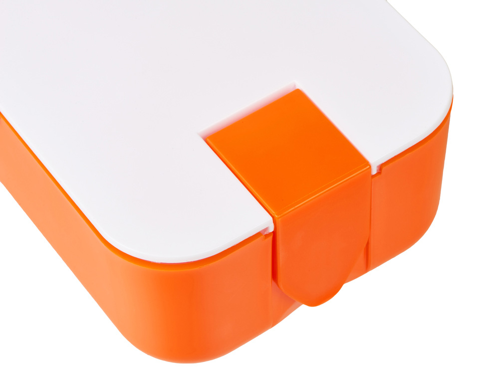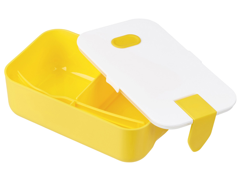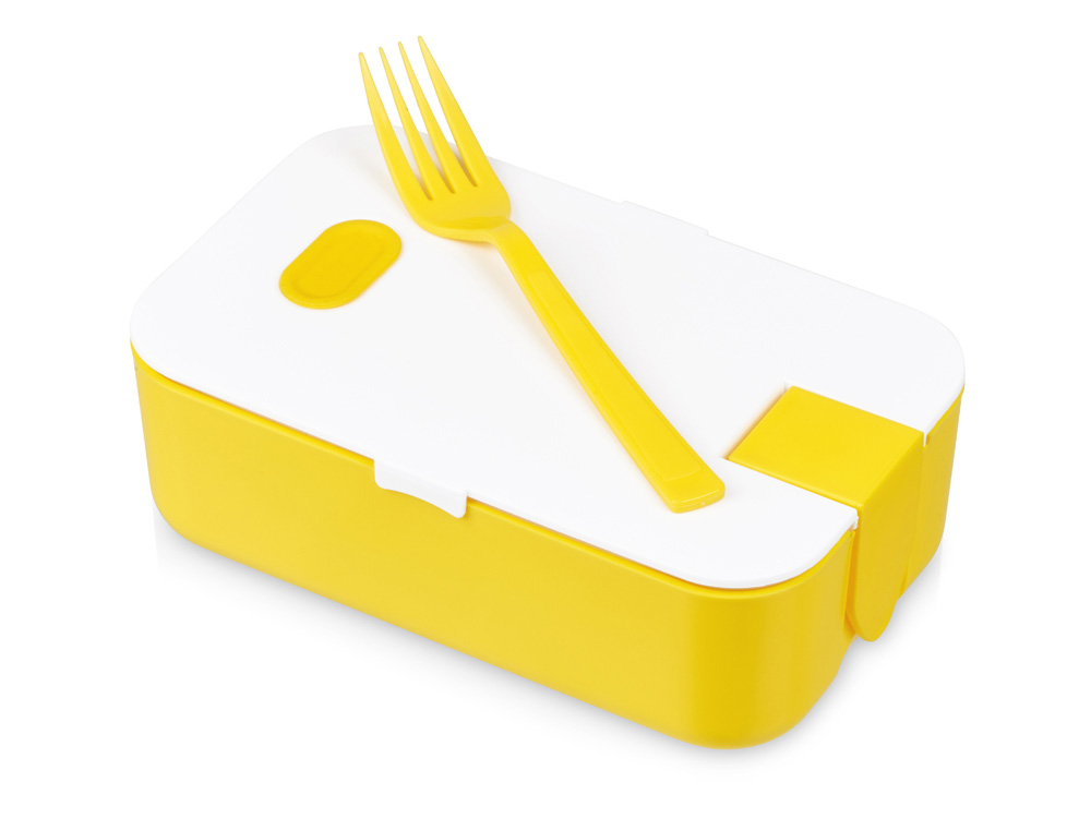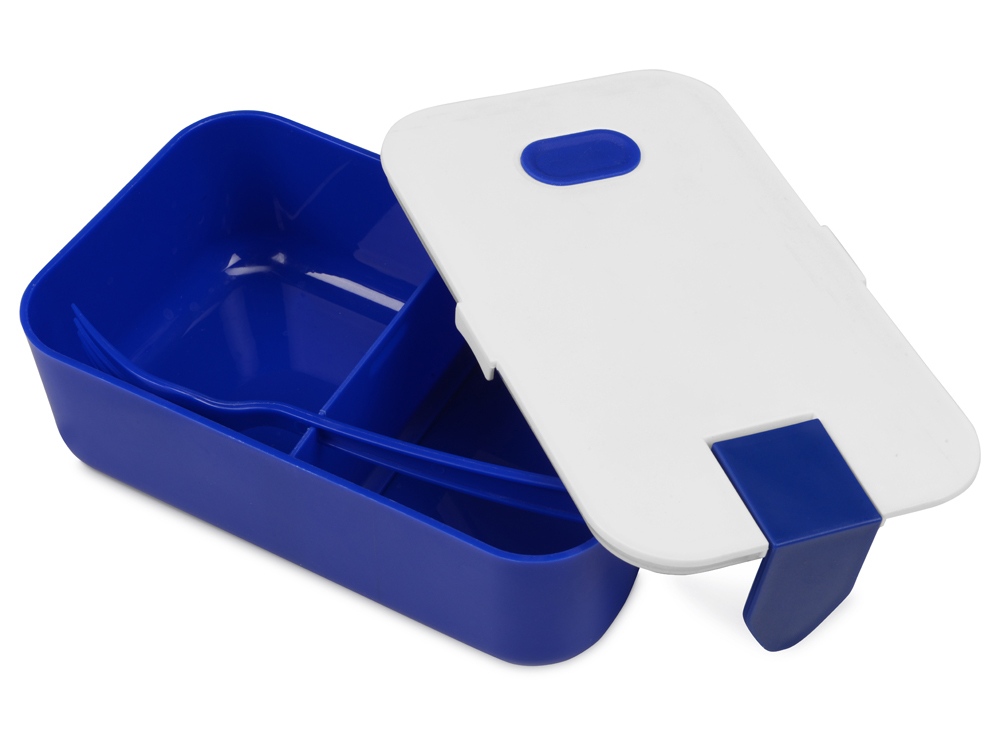 •Внутри прочной пластиковой емкости находятся снимаемая перегородка и вилка.