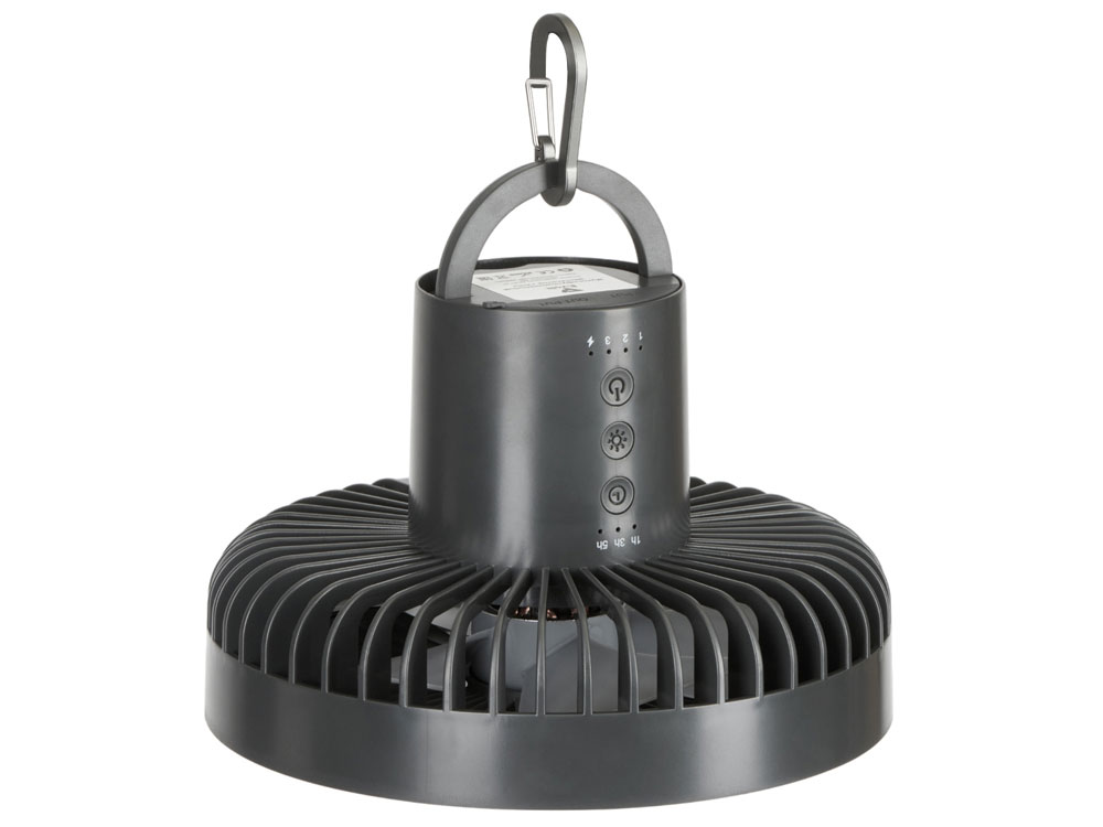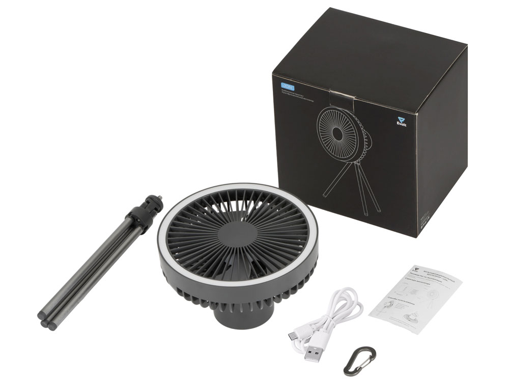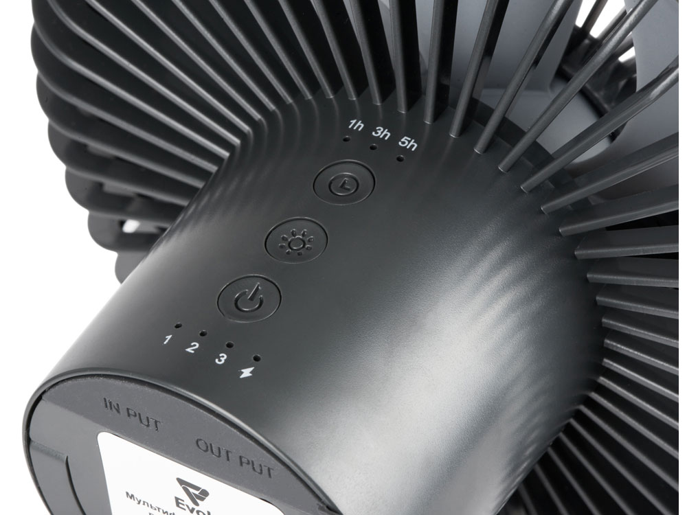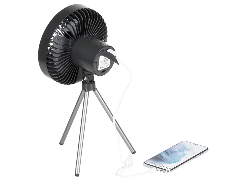 Многофункциональный вентилятор Jon имеет 3 режима обдува и подсветки: слабый, средний и интенсивный. Таймер позволяет запланировать отключение вентилятора с отсрочкой от 1 до 5 часов. Световой индикатор отображает процесс зарядки вентилятора, позволяющий определить, когда устройство полностью заряжено или скоро разрядится (время зарядки 3-4 часа). Вентилятор оснащён съёмной решёткой, что позволяет легко очистить его от пыли и загрязнений. Ручка, расположенная на корпусе, поможет удобно перенести вентилятор при необходимости. В комплект помимо штатива также входит карабин для подвешивания, что может быть очень полезным, например, в палатке. Ещё одна незаменимая функция для кэмпинга - возможность заряжать от вентилятора другие устройства (как от пауэрбанка), мощность аккумулятора - 3600 мА/ч. - три режима ночника и обдува; - таймер для отложенного отключения; - мощность: 4 Вт; - время зарядки: 3-4 ч; - уровень шума: 50 дБ; - съёмная решётка для удобства ухода за вентилятором; - индикатор заряда; - карабин для подвешивания и ручка для переноса. Комплектность: вентилятор d18 х 11,5 см, штатив d3,1 х 25 см, карабин, кабель USB-Type C, инструкция Емкость элемента: 3600 mAh Мощность: 4 Вт Входные параметры: 5V/2A Уровень шума: 50 Дб