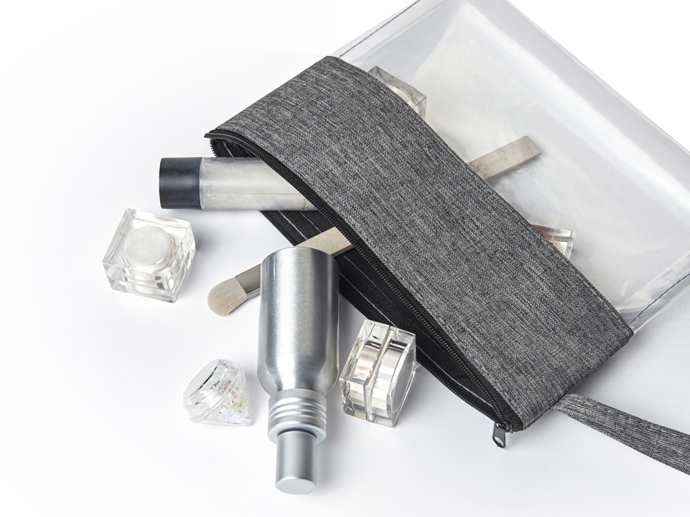 Косметичка Leony на молнии. Нижняя часть выполнена из прозрачного пластика, который позволяет быстро определить, что лежит в органайзере, не открывая его.